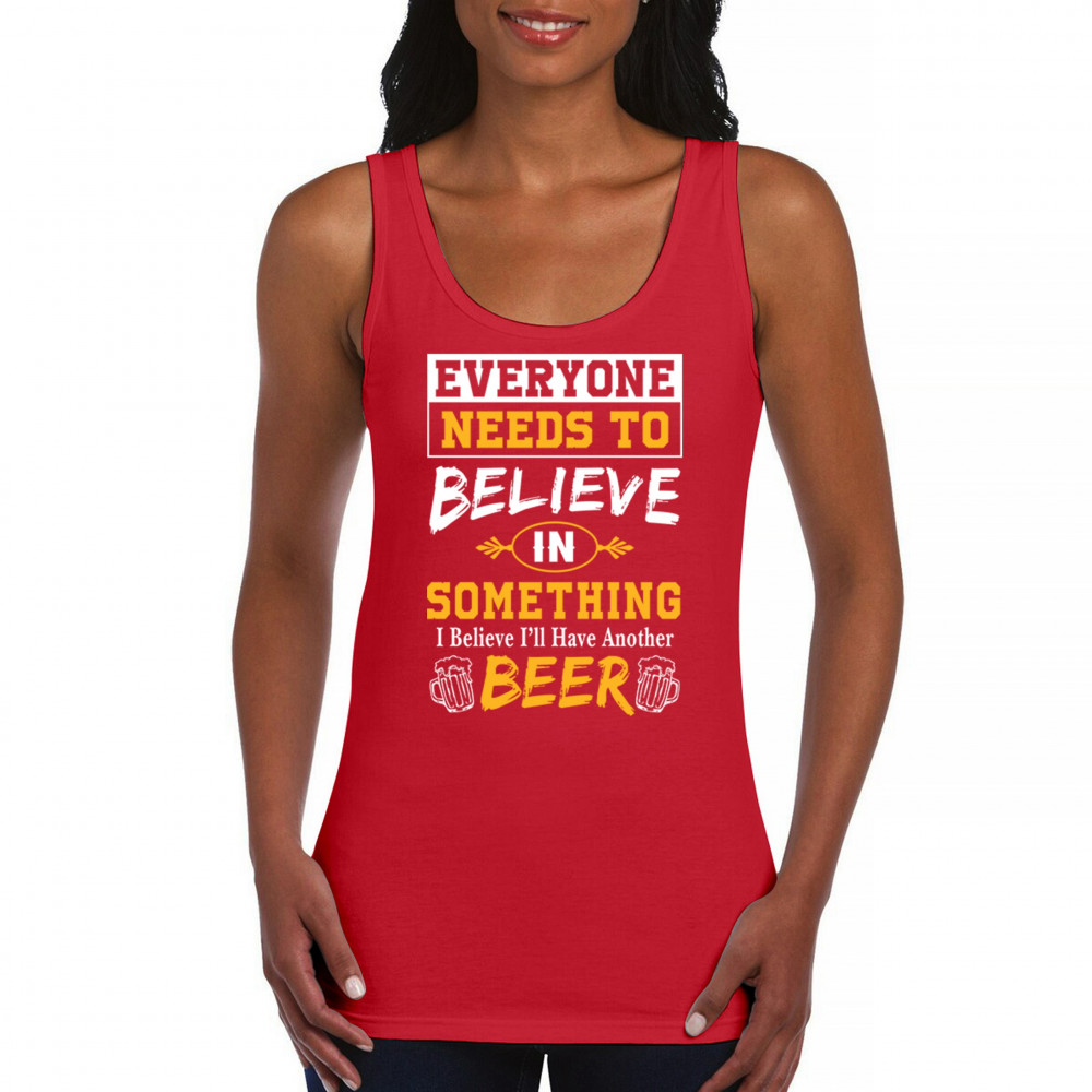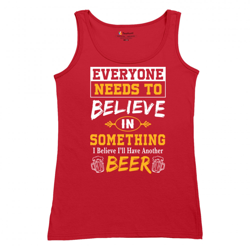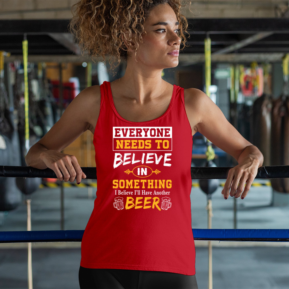 Celebrate your love for beer with the witty "Everyone Needs to Believe in Something, I Believe I'll Have Another Beer" design. Perfect for beer lovers and casual outings.