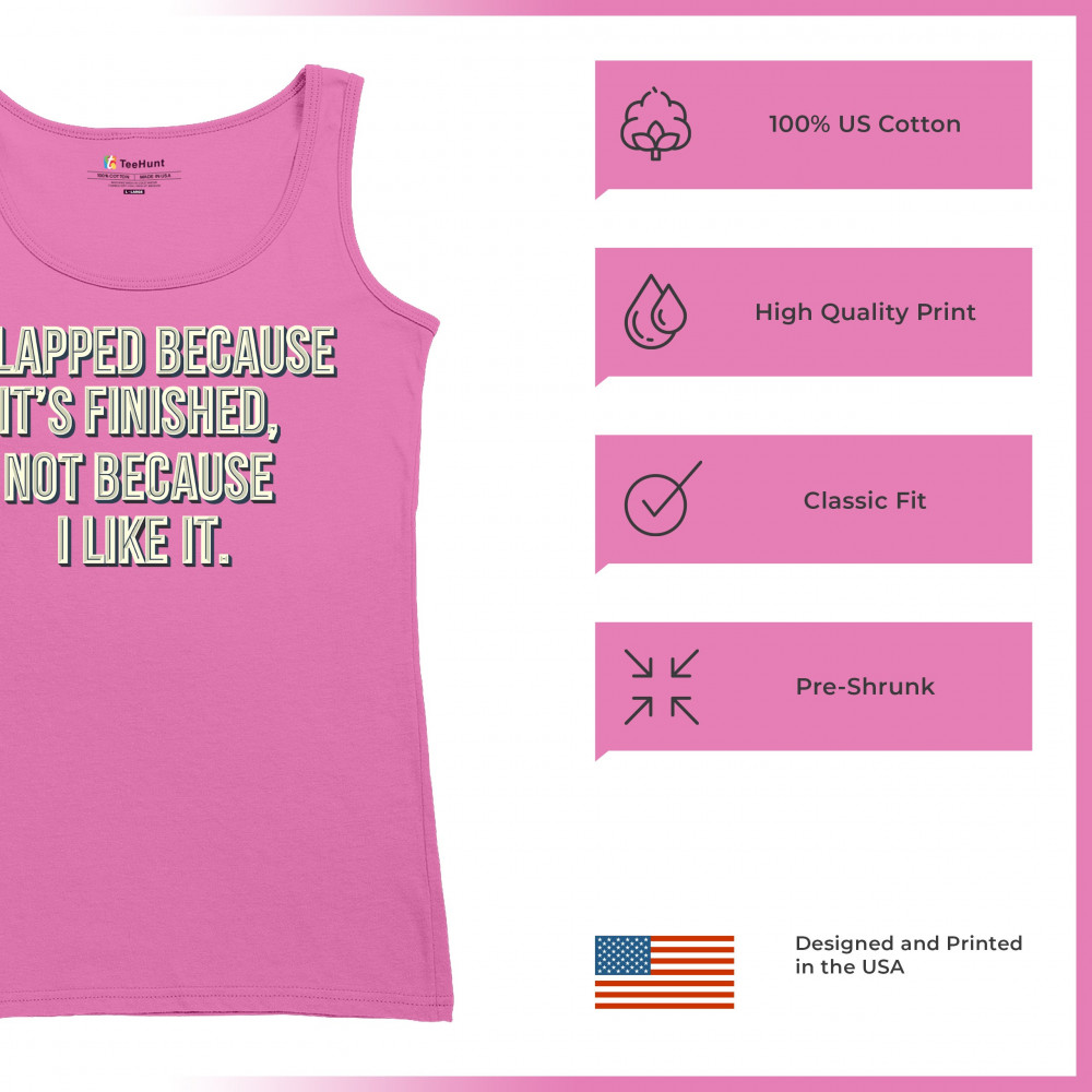 I CLAPPED BECAUSE IT'S FINISHED NOT BECAUSE I LIKE IT women's tank top funny pink