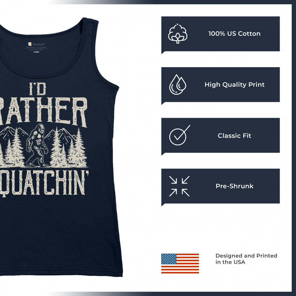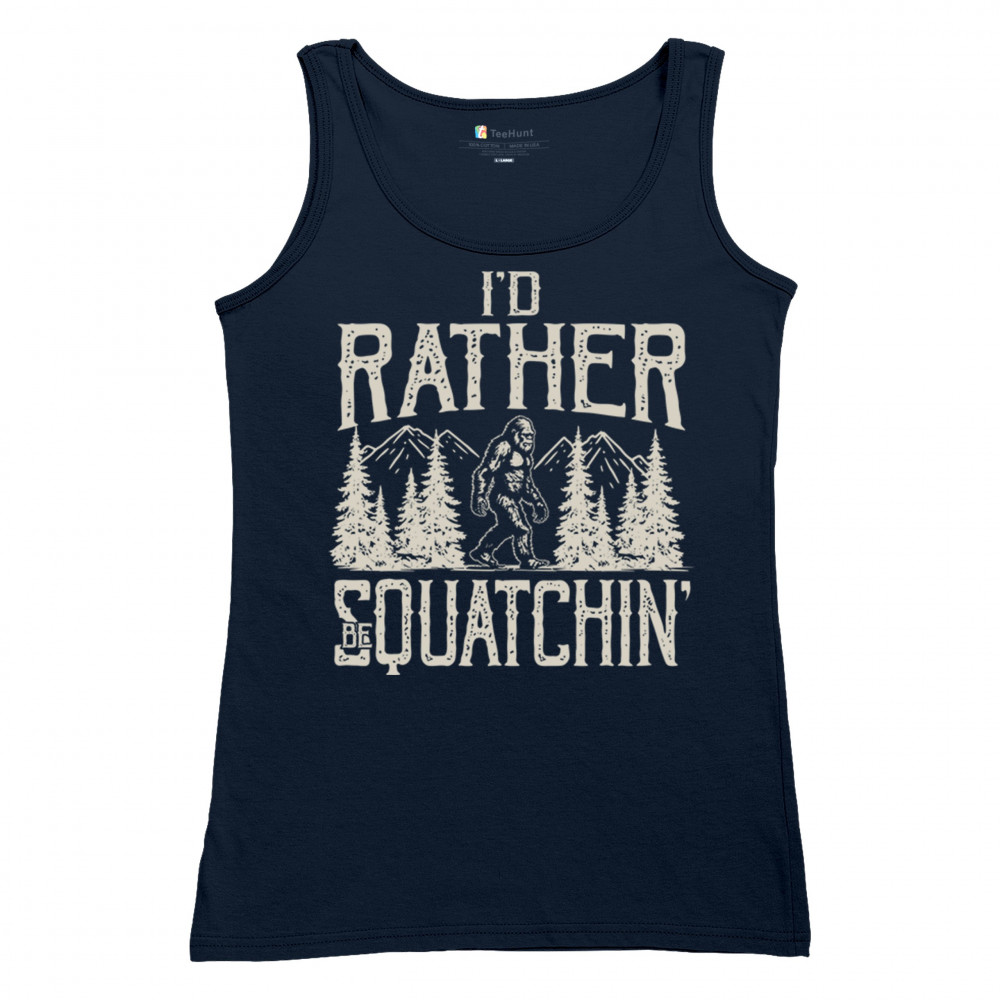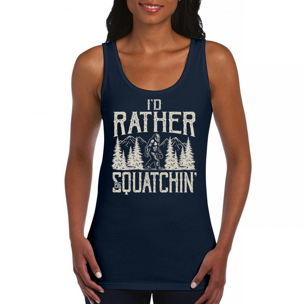 "I’d Rather Be Squatchin’" – A bold design for Bigfoot fans and outdoor adventurers, featuring Sasquatch in a wilderness setting. Perfect for hikers and cryptid enthusiasts!