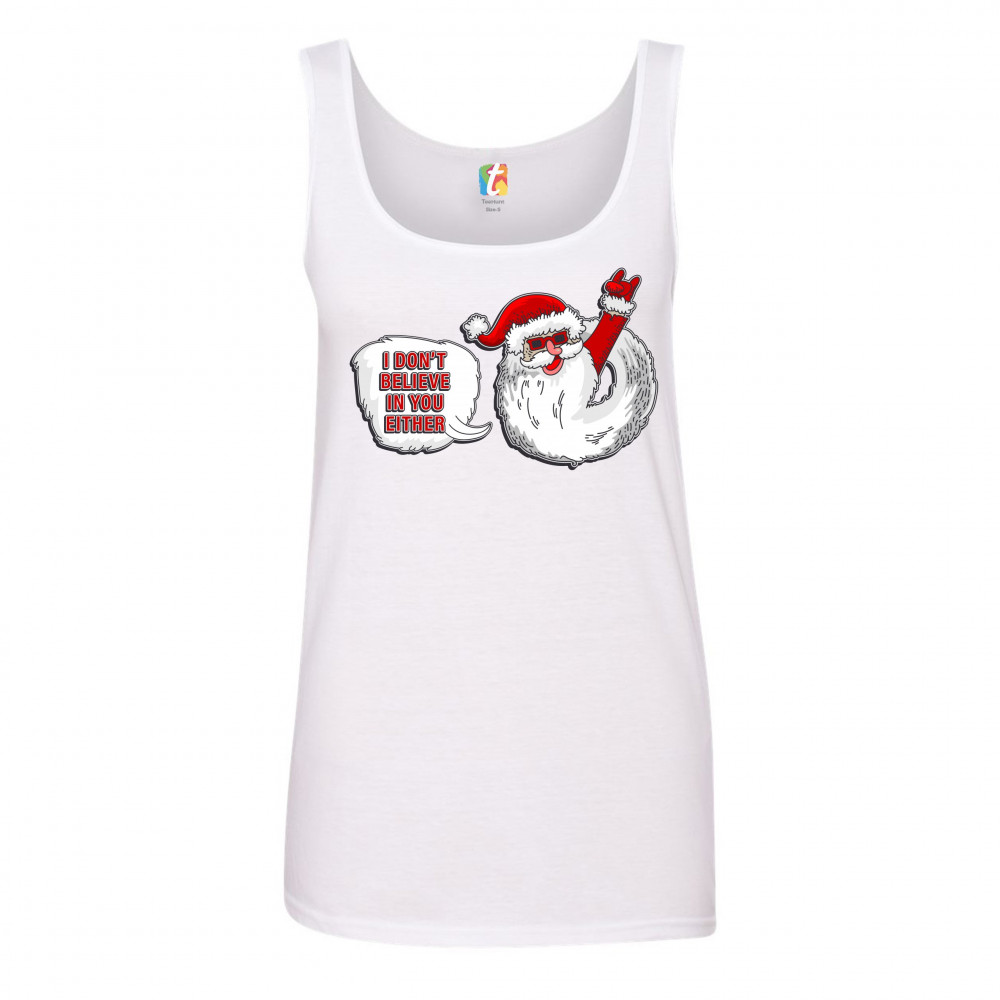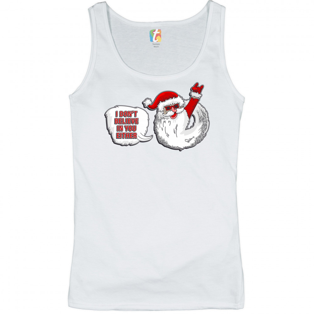 I DON'T BELIEVE IN YOU EITHER women's tank top santa claus merry christmas white