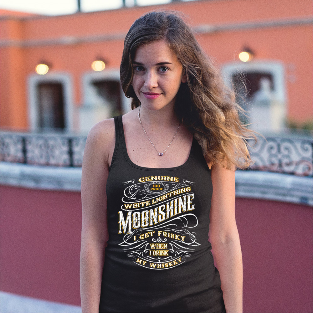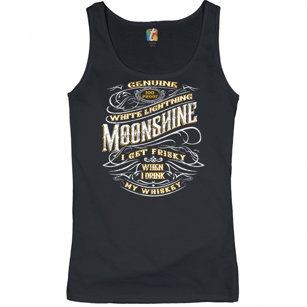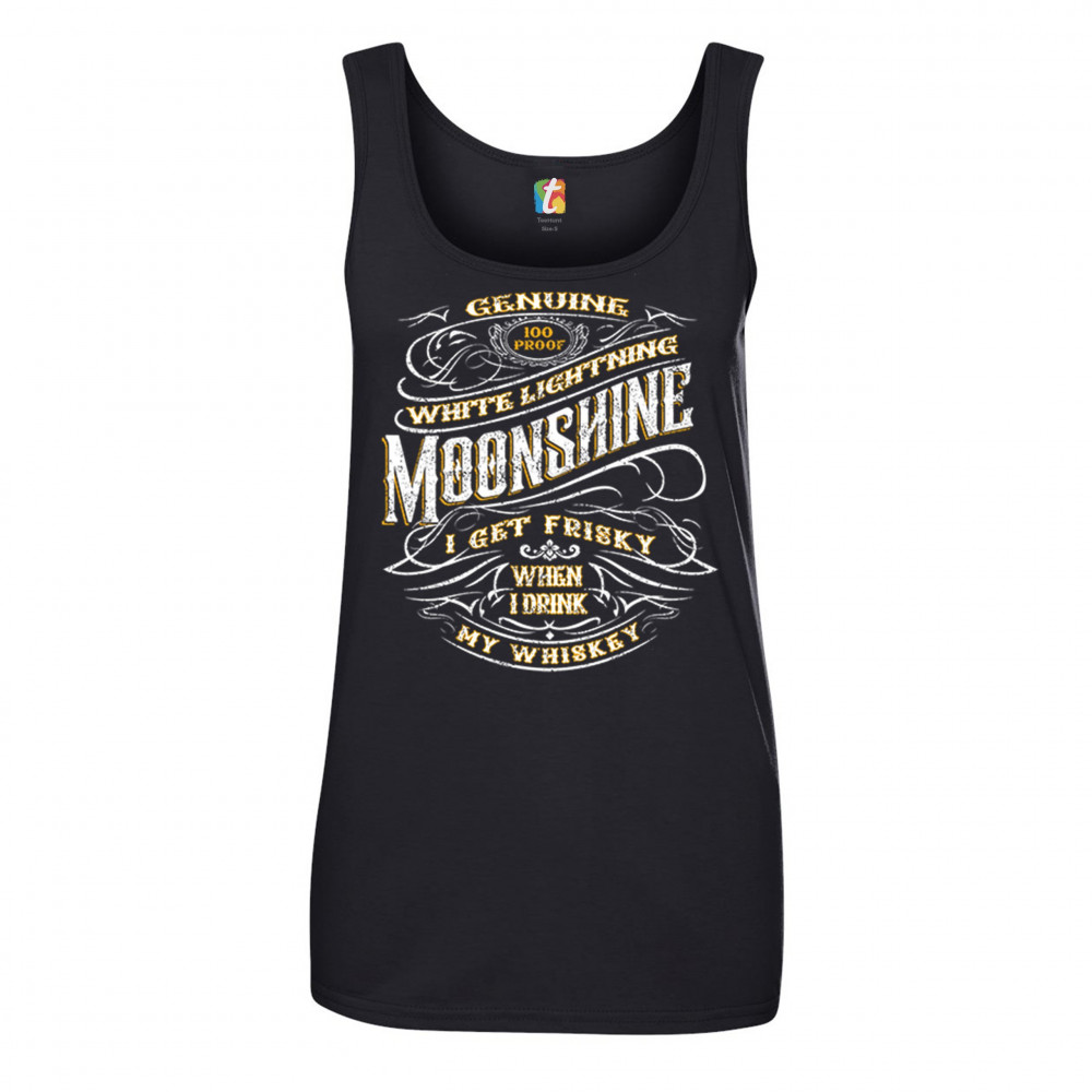 I GET FRISKEY WHEN I DRINK MY WHISKEY women's tank top genuine moonshine black