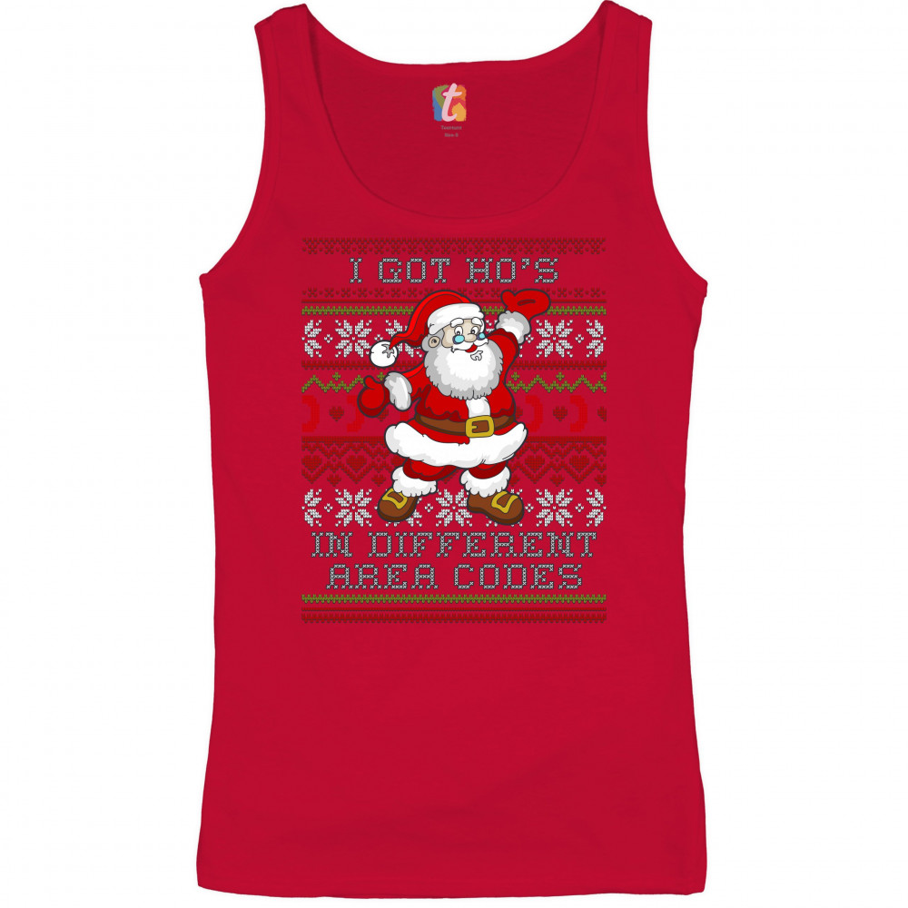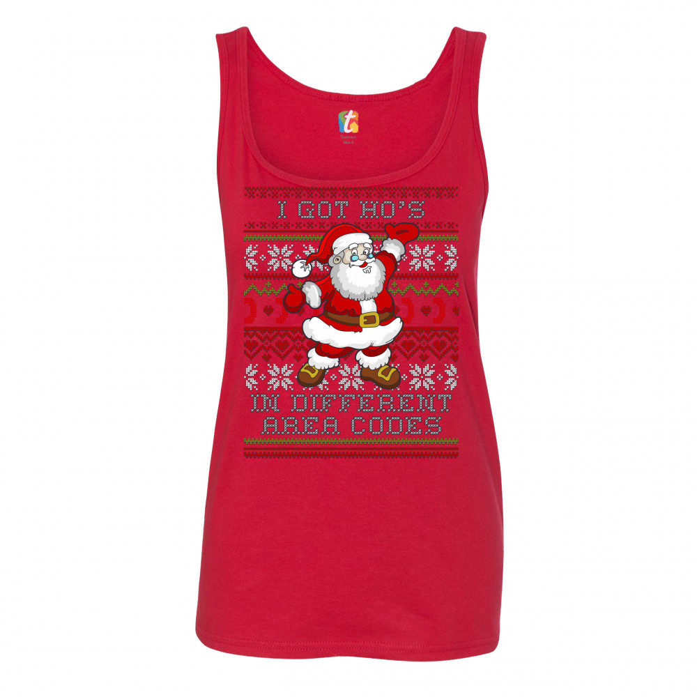 I GOT HO'S IN DIFFERENT AREA CODES women's tank top santa claus ugly sweater red