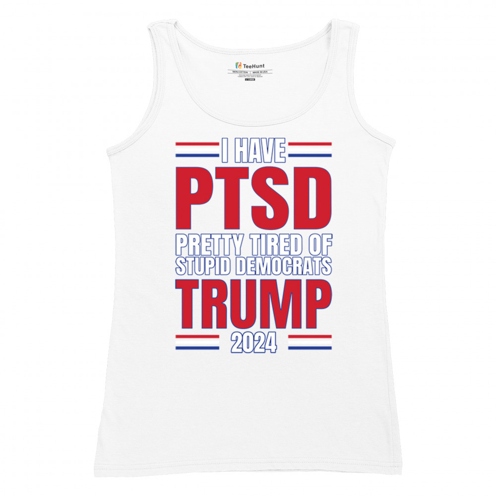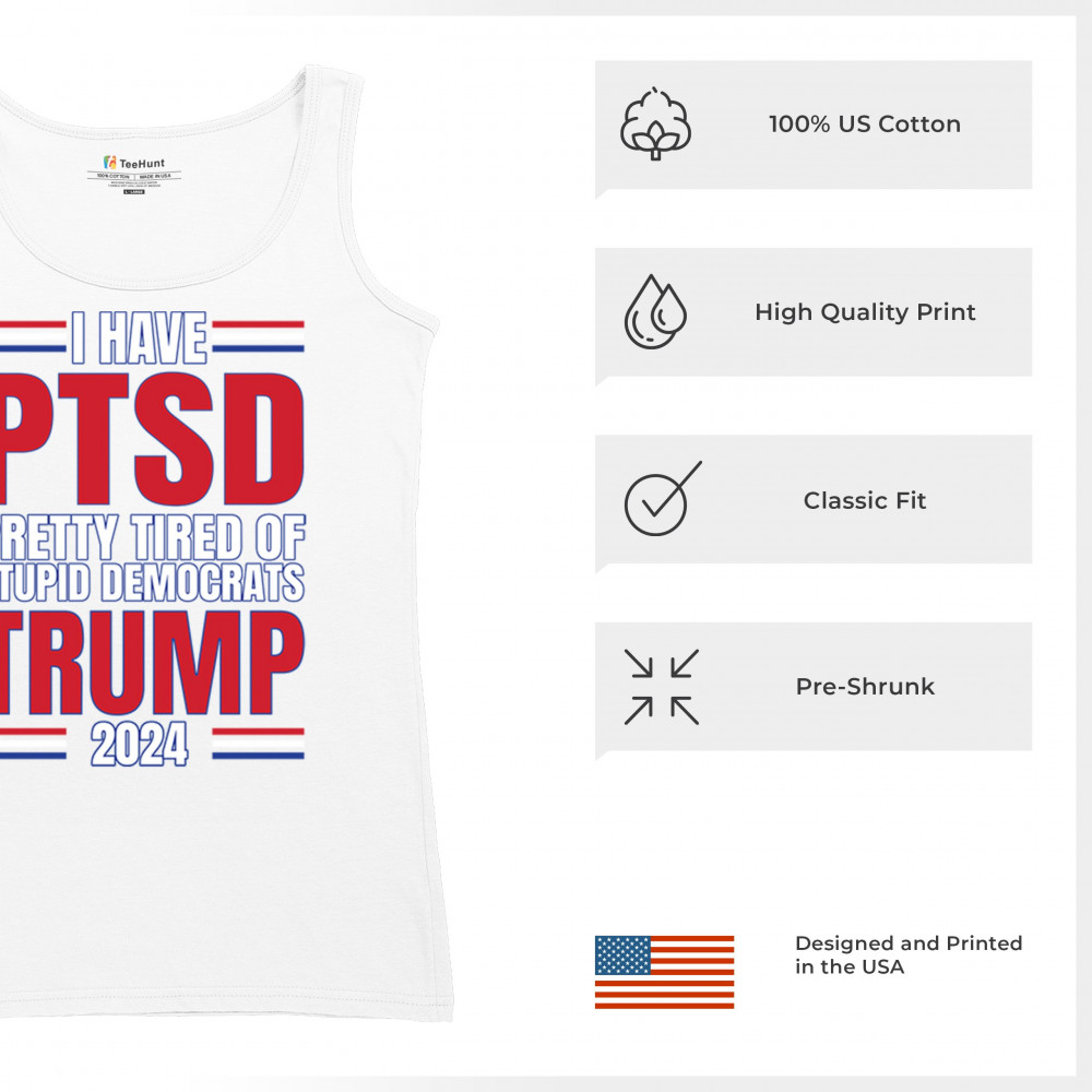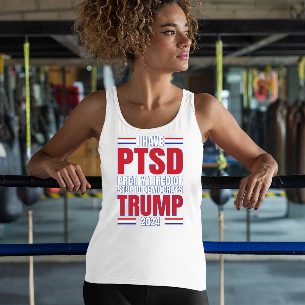 Stand up against the political chaos with "I have PTSD Pretty Tired of Democrats, Trump 2024" tee. As a dedicated supporter of conservative values, join the Trump Train to victory. Trust in God, not government, and reject the traitors to our nation. Let the American flag symbolize our resilience as we fight for President Trump and the future of America.