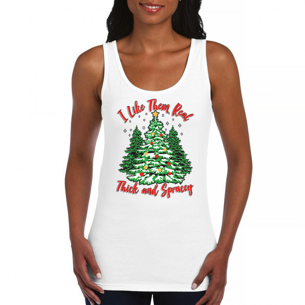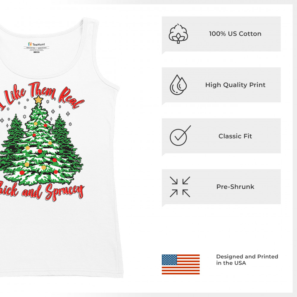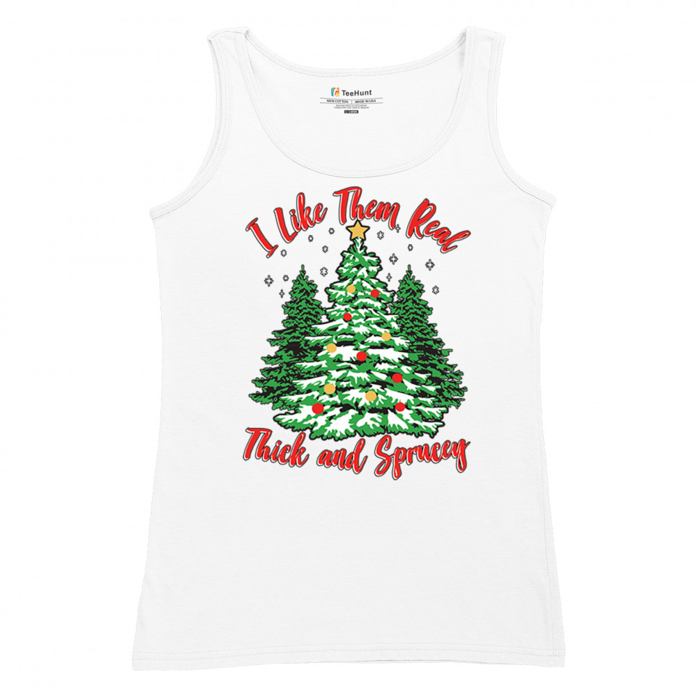 Enjoy the holiday season with our "I Like Them Real, Thick, and Sprucey" Christmas tree design, perfect for festive gatherings and holiday gifting!