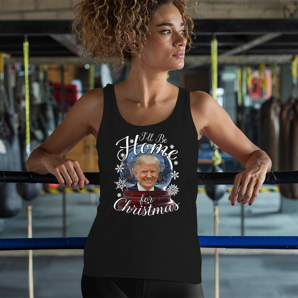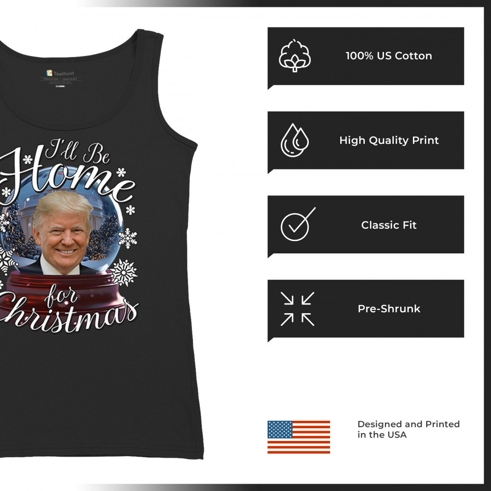 Get ready for the ultimate blend of holiday cheer and American pride with this "I'll Be Home for Christmas" design featuring Donald J. Trump in a festive snow globe. Perfect for gifts, holiday parties, or cozy mornings, this standout piece celebrates the season with style. Whether paired with matching pajamas or a cozy sweatshirt, it's a perfect way to add patriotic charm to your Feliz Navidad celebrations or office gatherings.