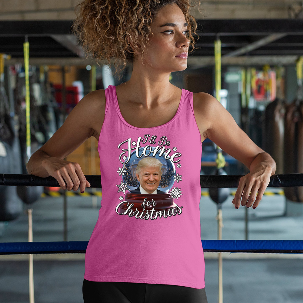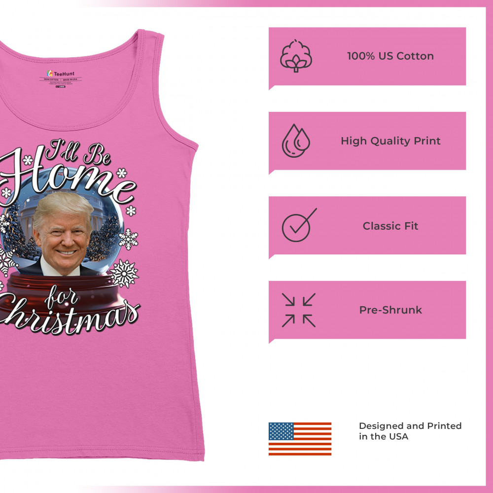 Get ready for the ultimate blend of holiday cheer and American pride with this "I'll Be Home for Christmas" design featuring Donald J. Trump in a festive snow globe. Perfect for gifts, holiday parties, or cozy mornings, this standout piece celebrates the season with style. Whether paired with matching pajamas or a cozy sweatshirt, it's a perfect way to add patriotic charm to your Feliz Navidad celebrations or office gatherings.