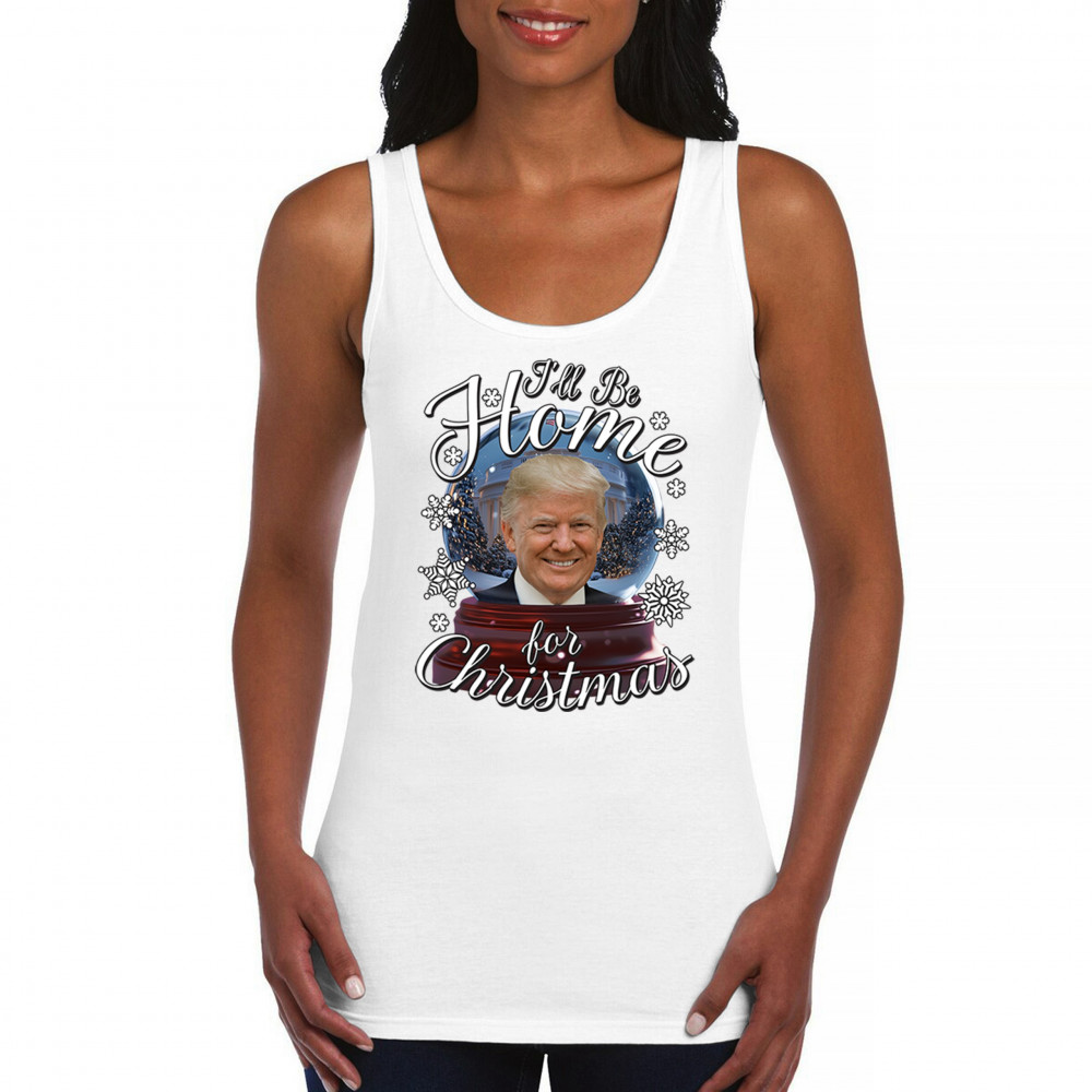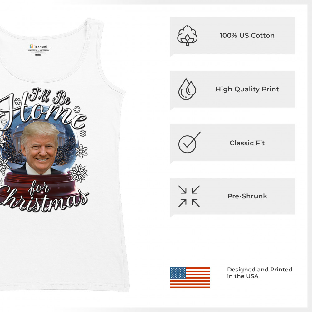 Get ready for the ultimate blend of holiday cheer and American pride with this "I'll Be Home for Christmas" design featuring Donald J. Trump in a festive snow globe. Perfect for gifts, holiday parties, or cozy mornings, this standout piece celebrates the season with style. Whether paired with matching pajamas or a cozy sweatshirt, it's a perfect way to add patriotic charm to your Feliz Navidad celebrations or office gatherings.