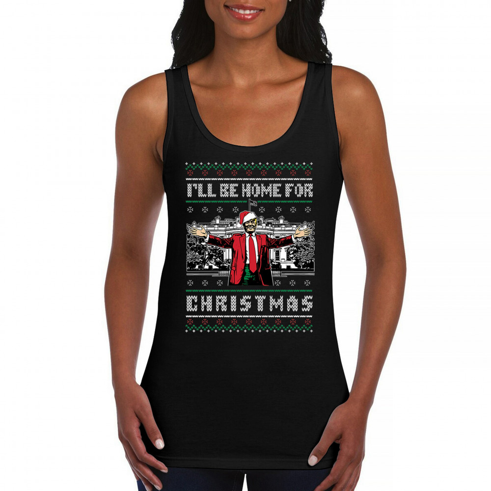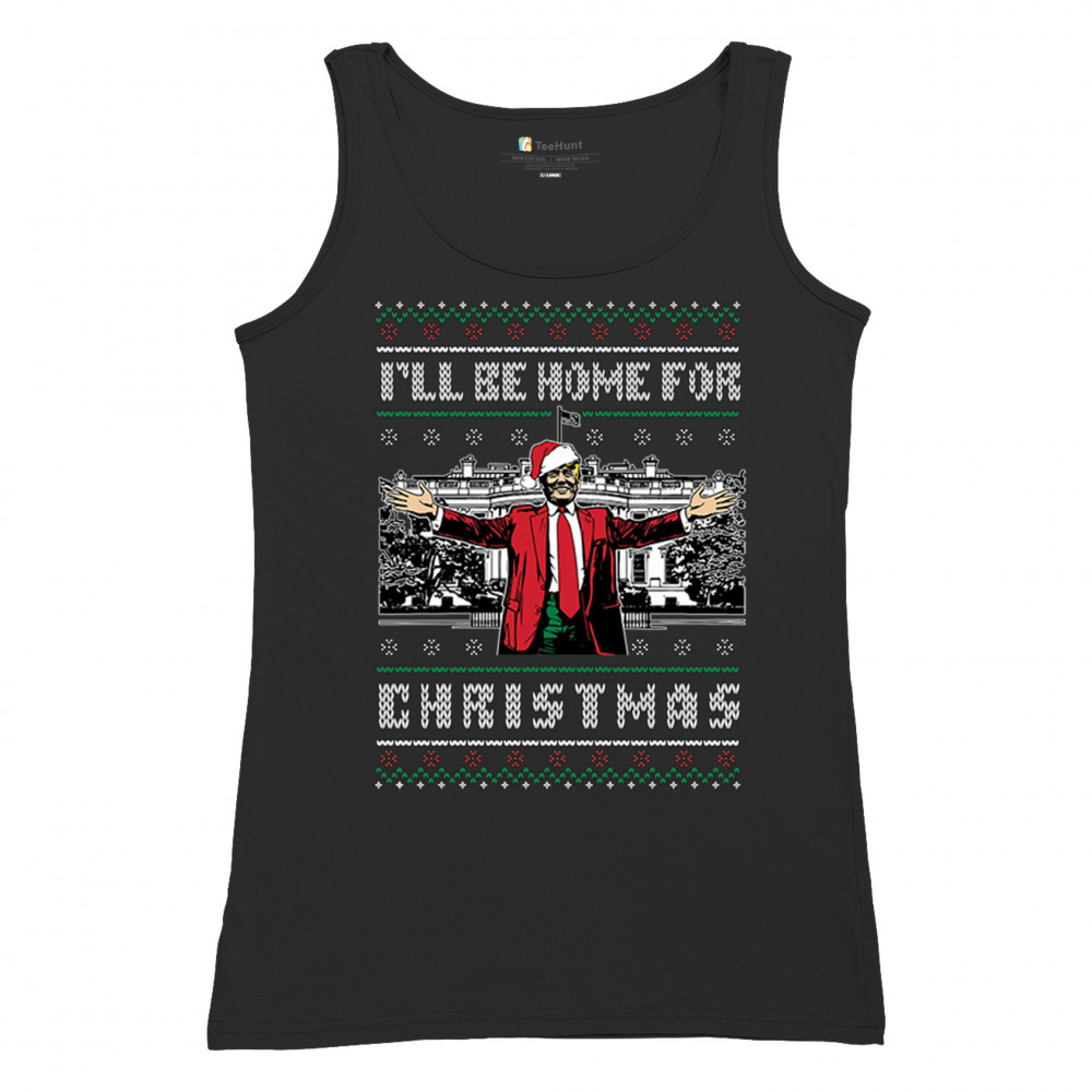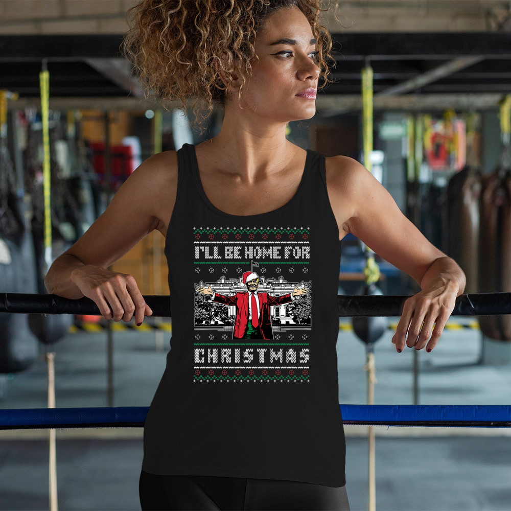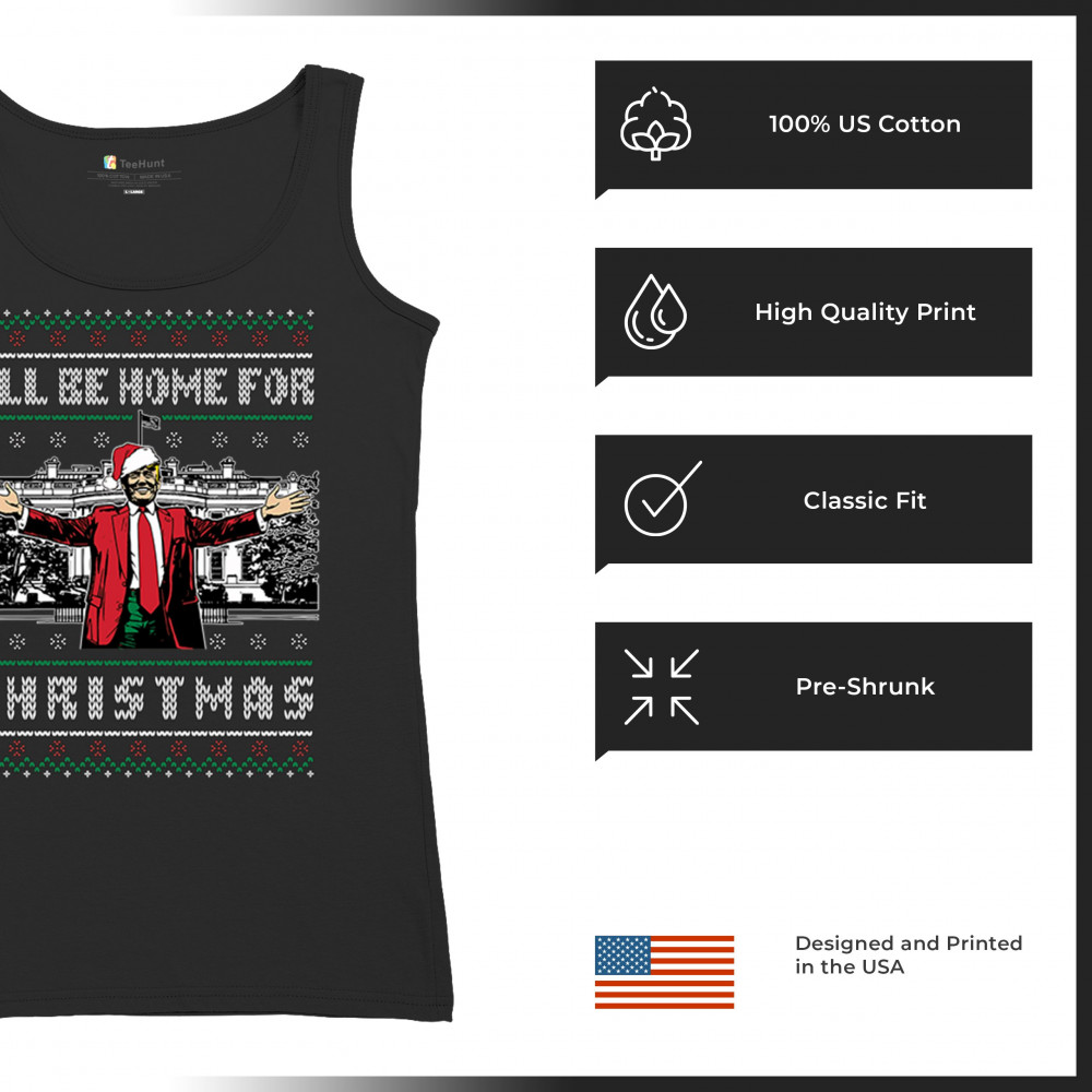Get into the Christmas spirit with the "I'll Be Home for Christmas" design featuring Donald J. Trump in a festive holiday setting. Perfect for ugly sweater contests, holiday gatherings, and unique gifts for supporters, this humorous design adds a bold, patriotic touch to your seasonal celebrations. Whether for cozy mornings or office parties, it's a must-have for holiday cheer.