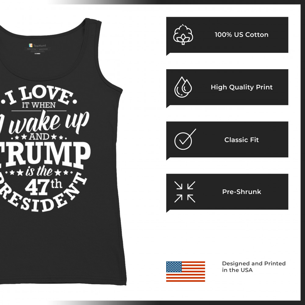 This "I Love It When I Wake Up and Trump is the 47th President" design is the ultimate expression of support for Donald J. Trump and his vision for America. Join the ranks of proud conservatives, Republicans, and America First advocates who are excited about the 47th President’s leadership. Celebrate the Red Wave and stay true to the values of freedom and strength that Trump embodies. Perfect for rallies, gatherings, and everyday patriotic wear.