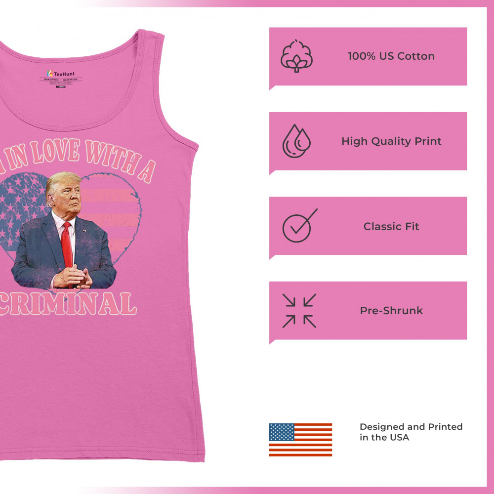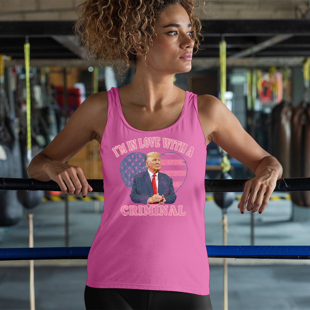 Support Trump with this "I'm in Love with a Criminal" design, embodying conservative values and America First ideals. Perfect for rallies and daily expression.