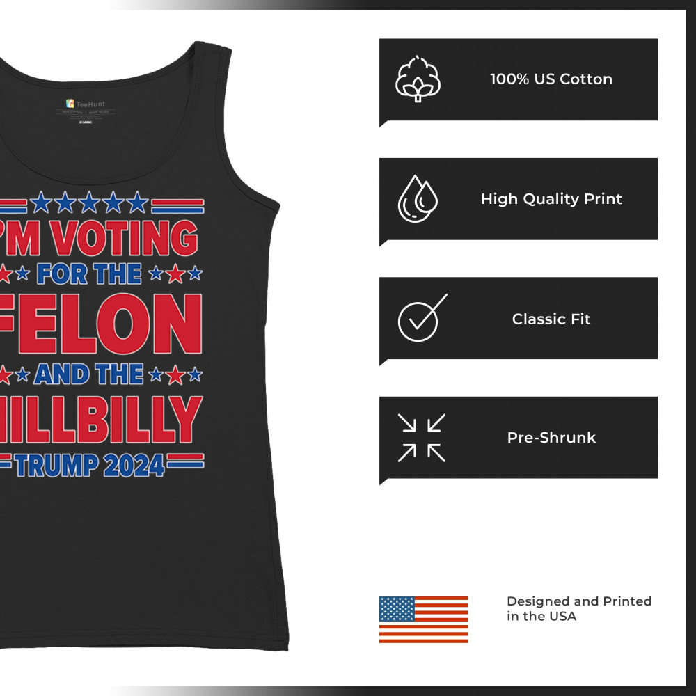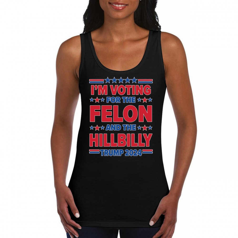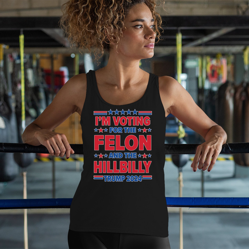 I'M VOTING FOR THE FELON AND THE HILLBILLY TRUMP 2024 women's tank top maga black