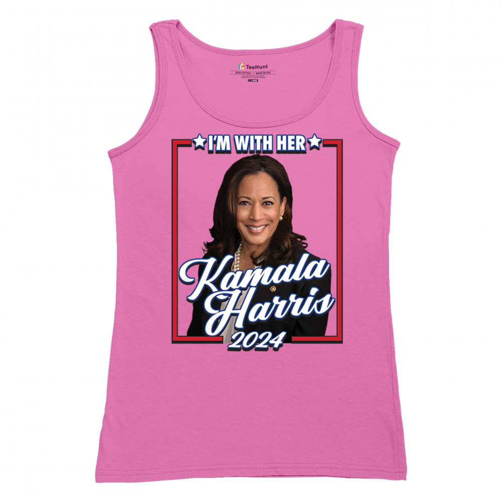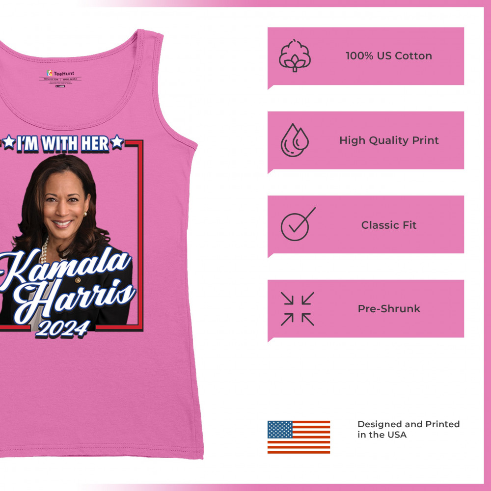 Stand with Kamala Harris in her 2024 presidential campaign with this vibrant design. Highlighting her commitment to progressive causes, this design is perfect for supporters of LGBTQ+ rights, women's rights, and social justice. Featuring the iconic "I'm With Her" slogan, it's a bold statement for anyone who believes in a brighter future. Wear it to rallies, events, or any day to show your support for Kamala Harris and her vision for America. A great addition to any supporter’s collection!