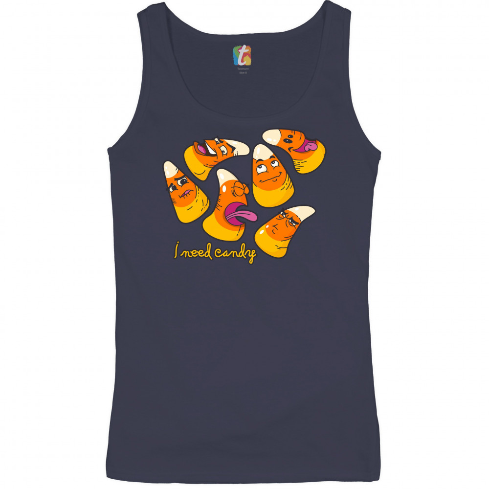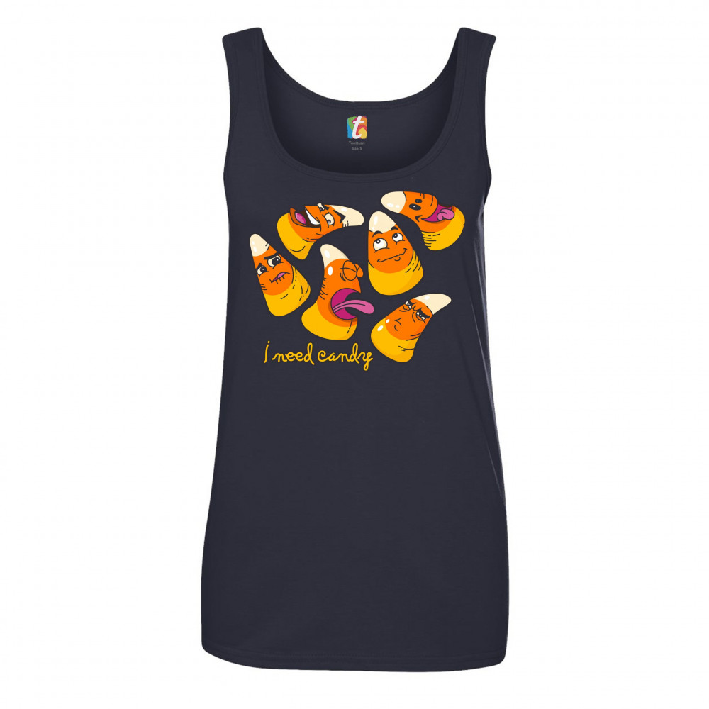 I NEED CANDY women's tank top happy halloween trick-or-treating funny navy blue