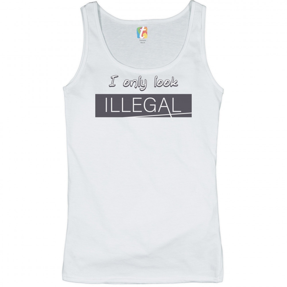 I ONLY LOOK ILLEGAL women's tank top stop racism pro immigration funny white