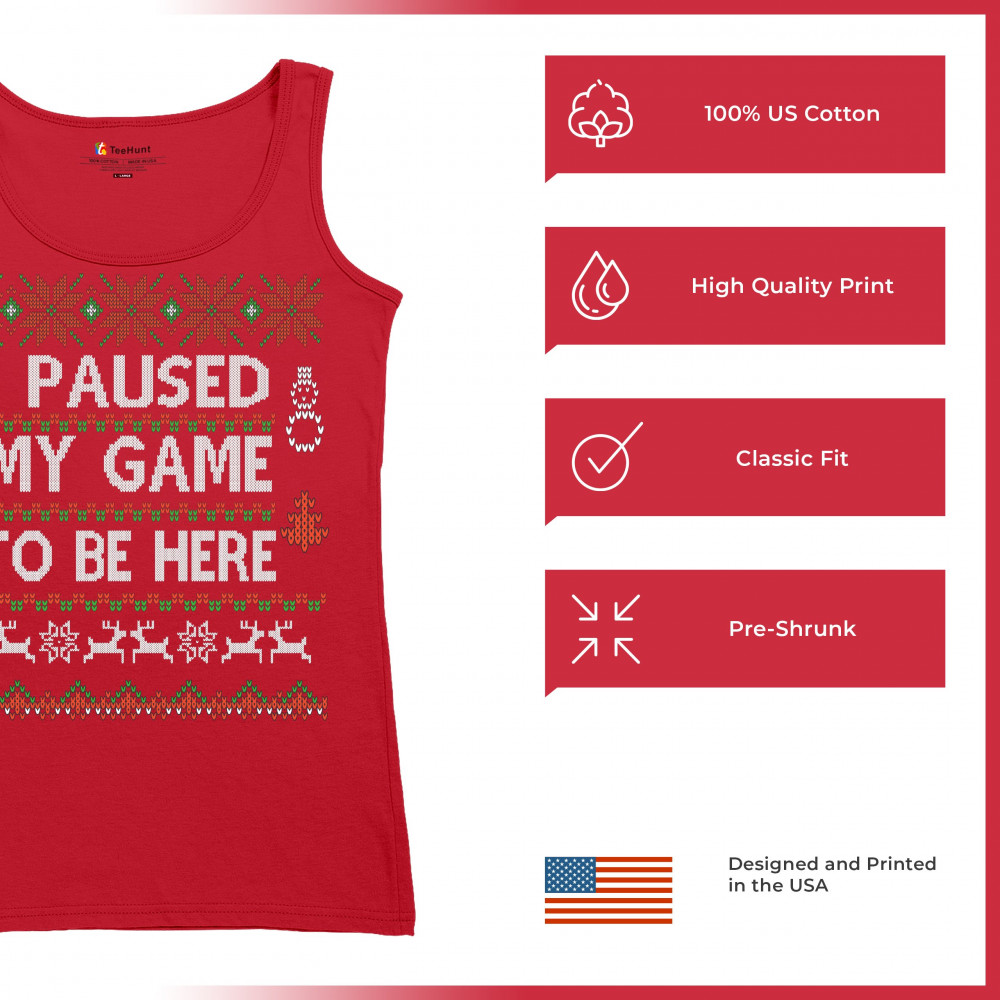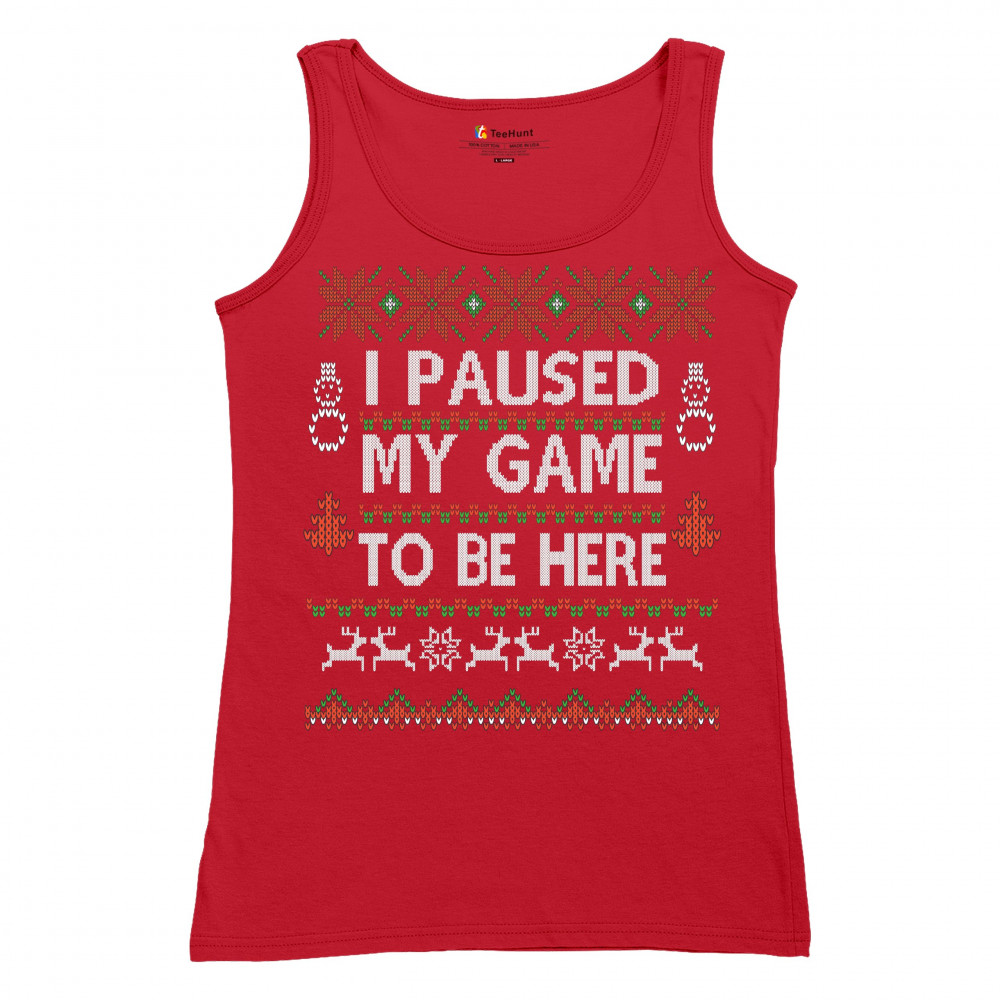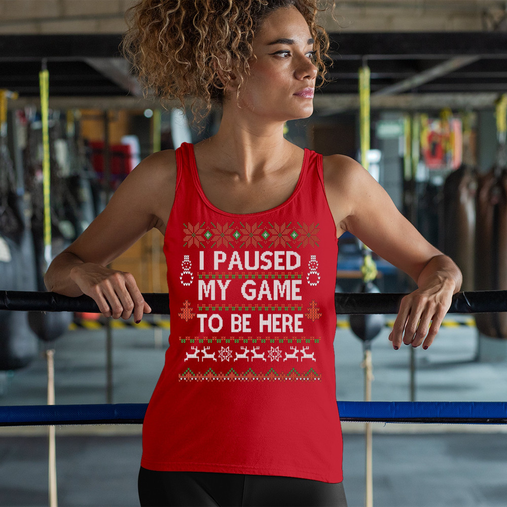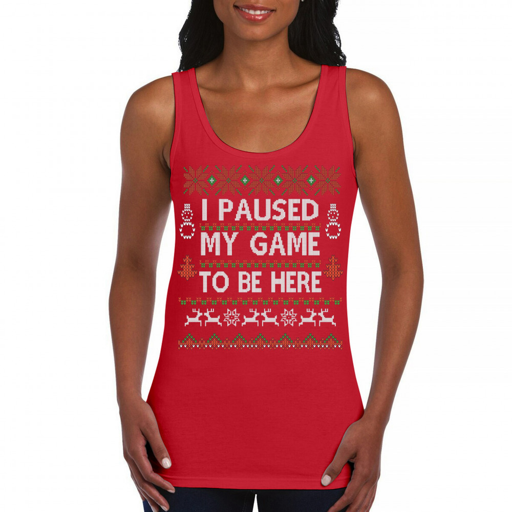 I PAUSED MY GAME TO BE HERE UGLY SWEATER THEME women's tank top christmas red