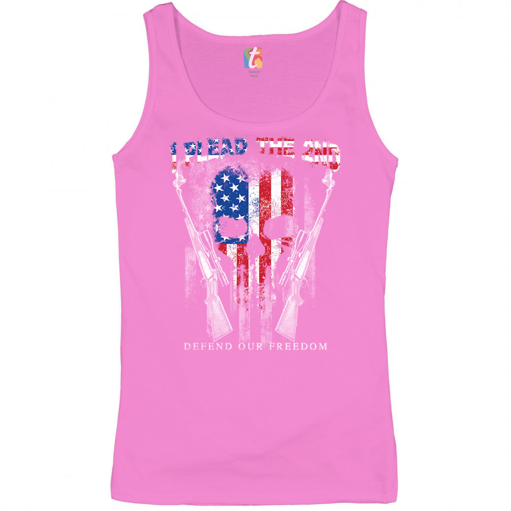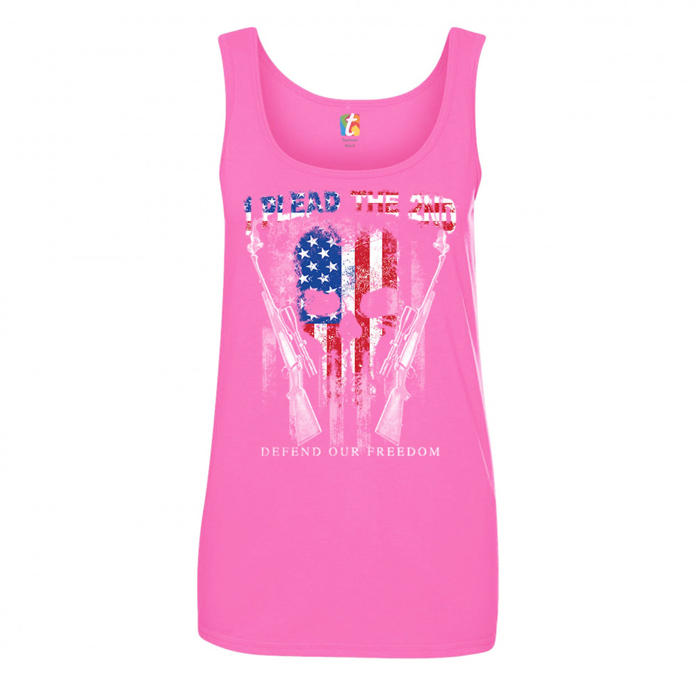 I PLEAD THE 2ND DEFEND OUR FREEDOM women's tank top american flag skull face pink