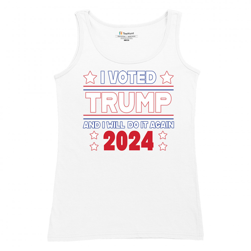 Stand tall as a dedicated Trump supporter with our "I Voted Trump and Will Do It Again 2024" design, showcasing your unwavering commitment to the America First agenda. Let the world know that you stand ready to cast your vote for President Trump once more