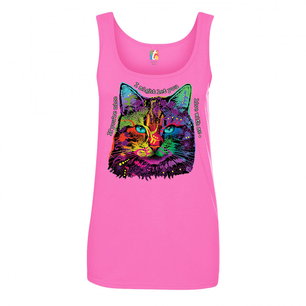 IF YOU'RE NICE I MIGHT LET YOU LIVE WITH ME women's tank top andy maxx cat pink