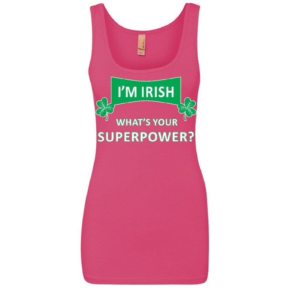 I'M IRISH WHAT'S YOUR SUPERPOWER? women's tank top irish shamrock clover top pink