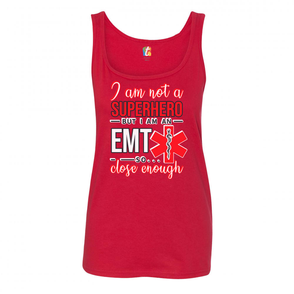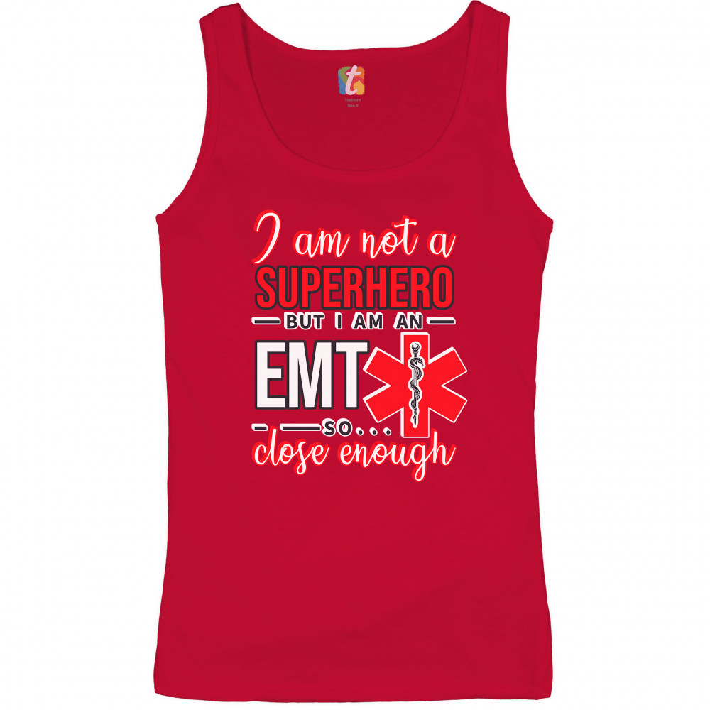 A funny print saying "I'm Not a Superhero But I'm an EMT so Close Enough". All words are written in different fonts. The print also includes the Star of Life, the worldwide recognized symbol of emergency medical services, with the Rod of Asclepius inside of it. A great choice as a gift for a first responder.