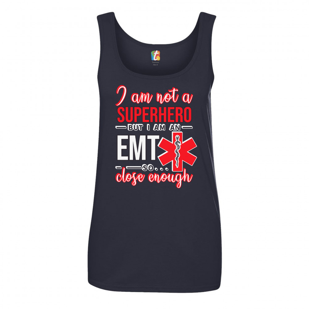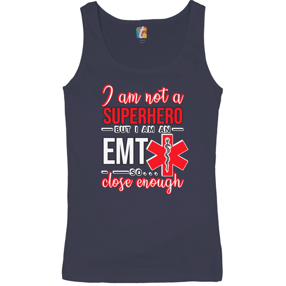 A funny print saying "I'm Not a Superhero But I'm an EMT so Close Enough". All words are written in different fonts. The print also includes the Star of Life, the worldwide recognized symbol of emergency medical services, with the Rod of Asclepius inside of it. A great choice as a gift for a first responder.