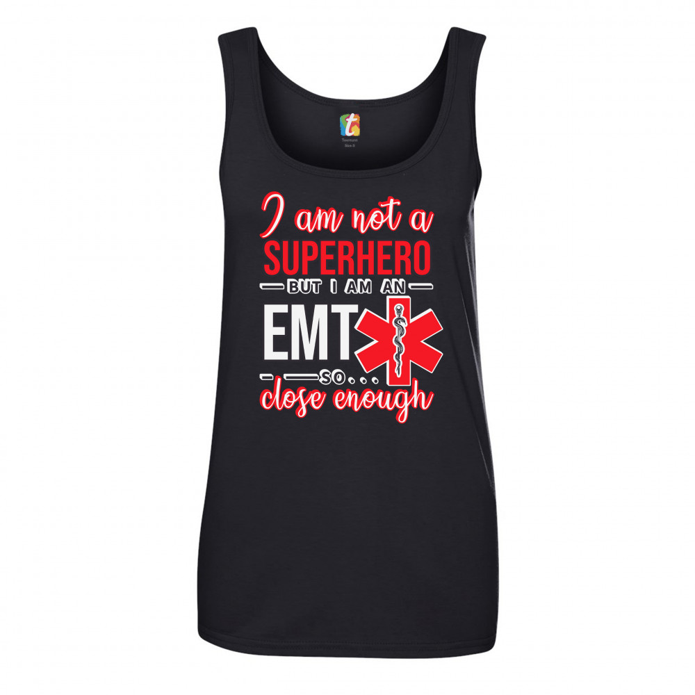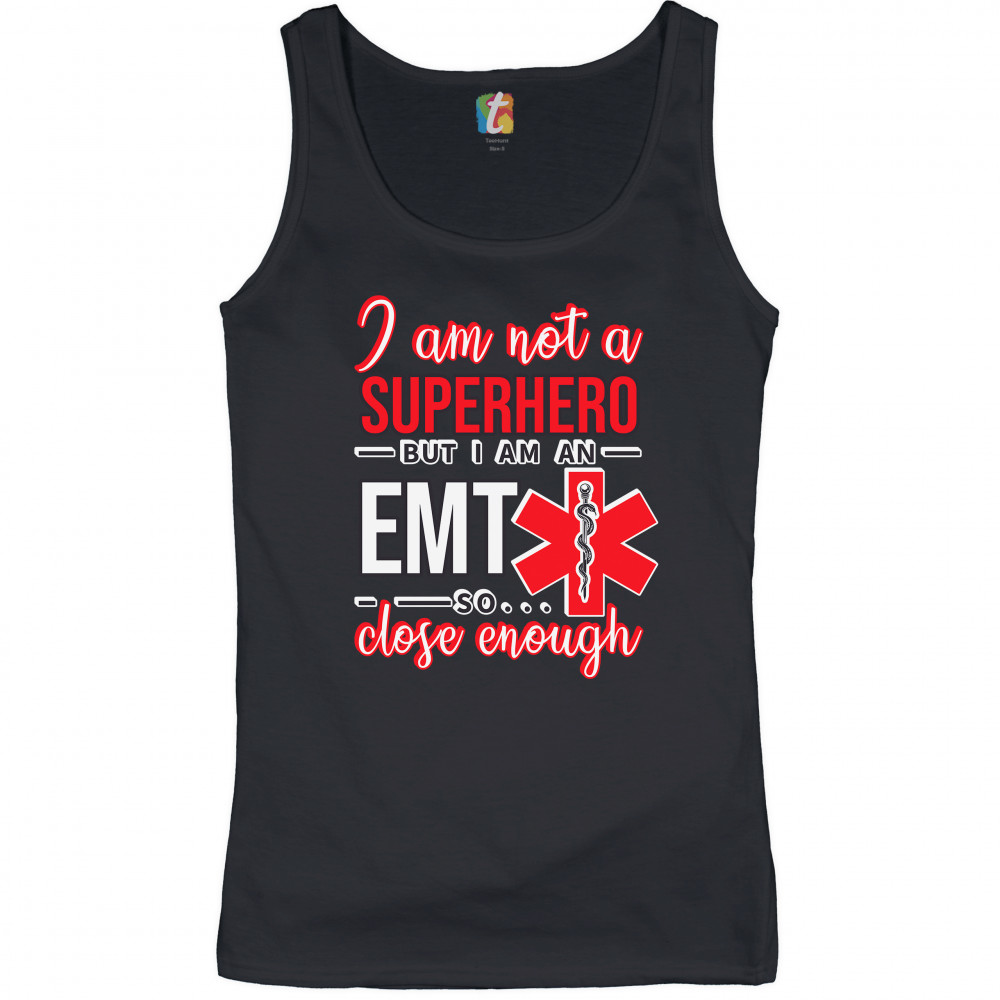 A funny print saying "I'm Not a Superhero But I'm an EMT so Close Enough". All words are written in different fonts. The print also includes the Star of Life, the worldwide recognized symbol of emergency medical services, with the Rod of Asclepius inside of it. A great choice as a gift for a first responder.