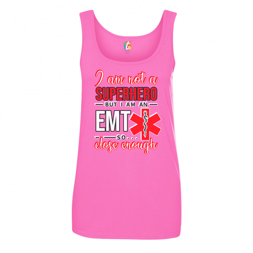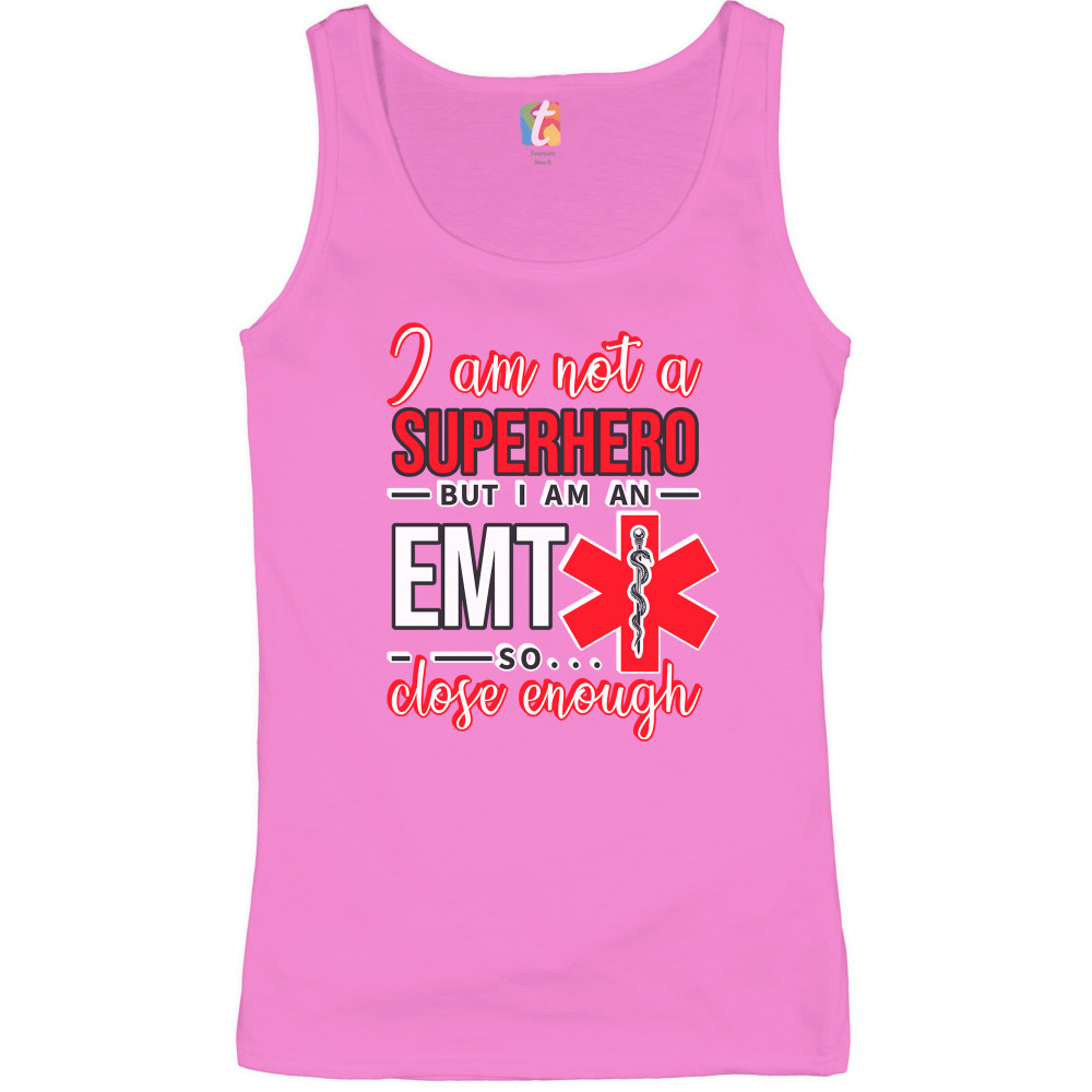 A funny print saying "I'm Not a Superhero But I'm an EMT so Close Enough". All words are written in different fonts. The print also includes the Star of Life, the worldwide recognized symbol of emergency medical services, with the Rod of Asclepius inside of it. A great choice as a gift for a first responder.