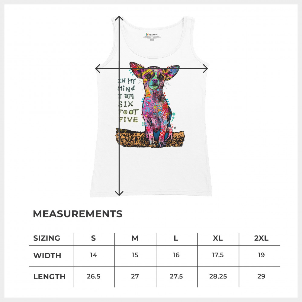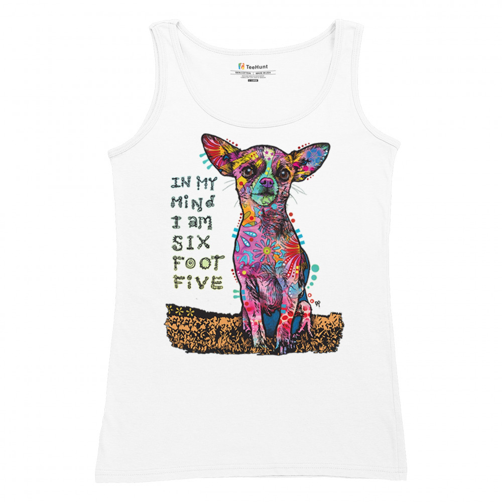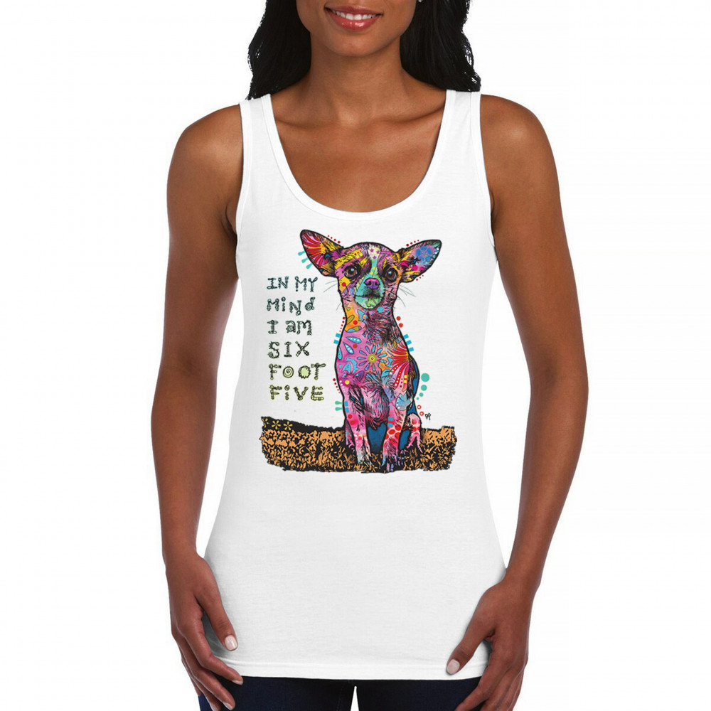 IN MY MIND I'M SIX FOOT FIVE women's tank top dean russo funny chihuahua white