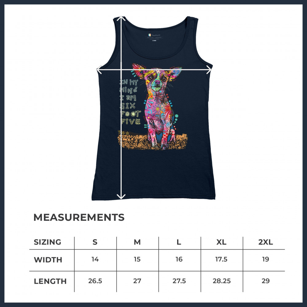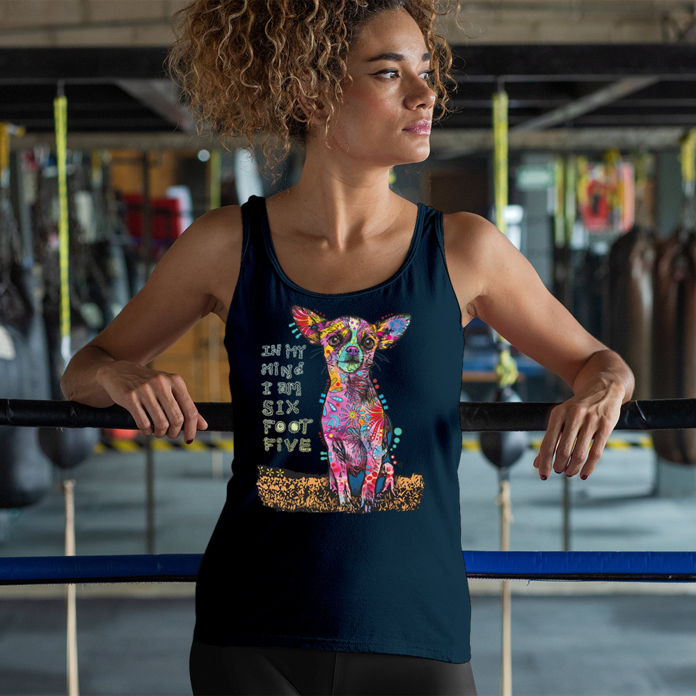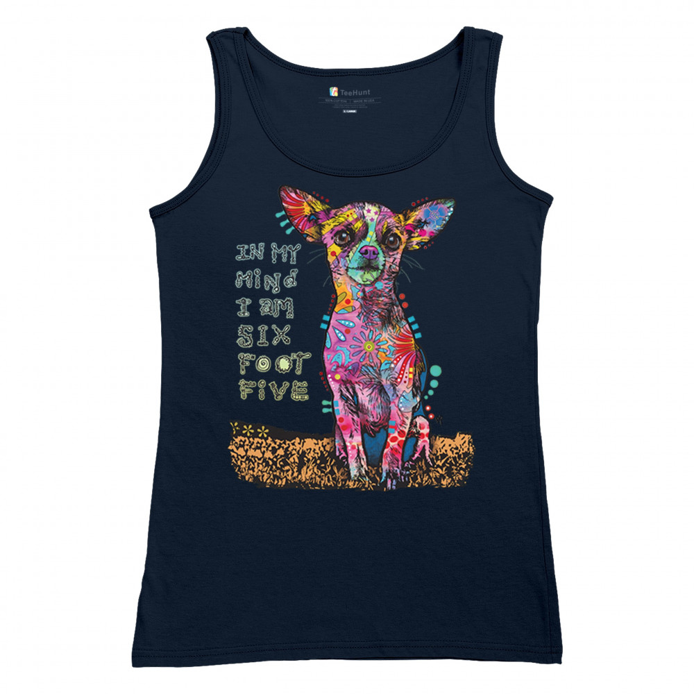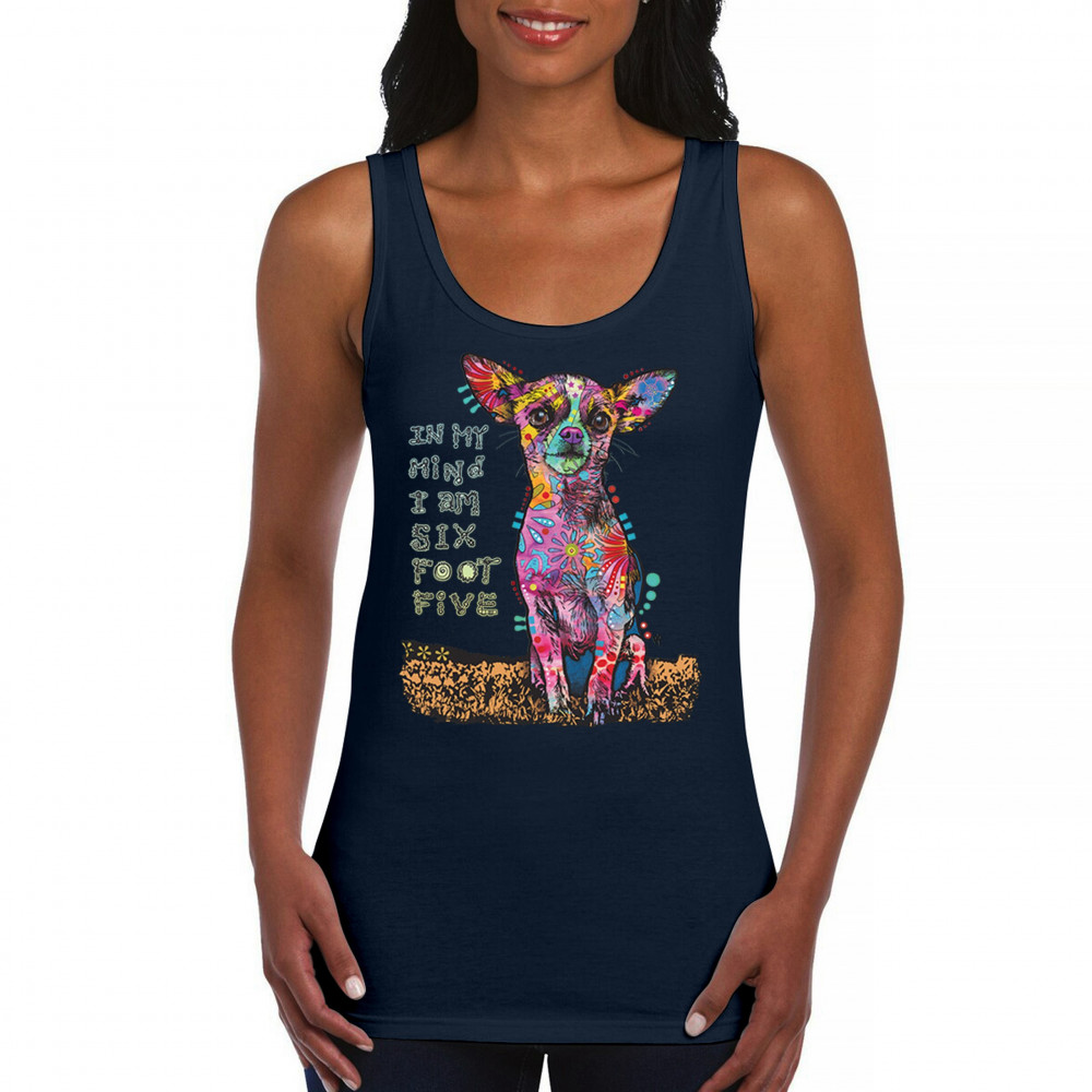 IN MY MIND I'M SIX FOOT FIVE women's tank top dean russo funny chihuahua navy blue