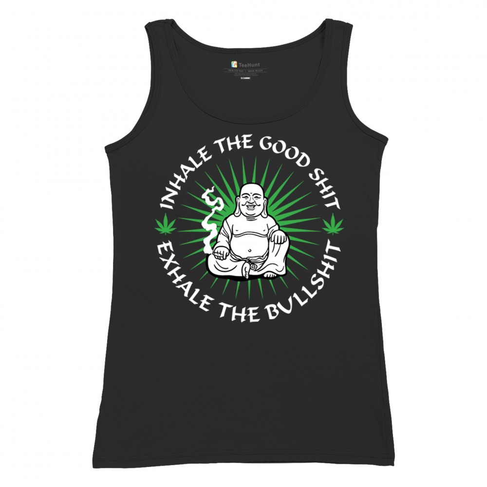 INHALE GOOD SHIT EXHALE BULLSHIT women's tank top buddha weed cannabis 420 black