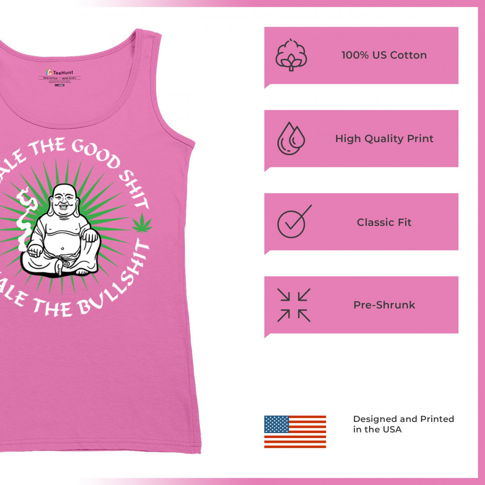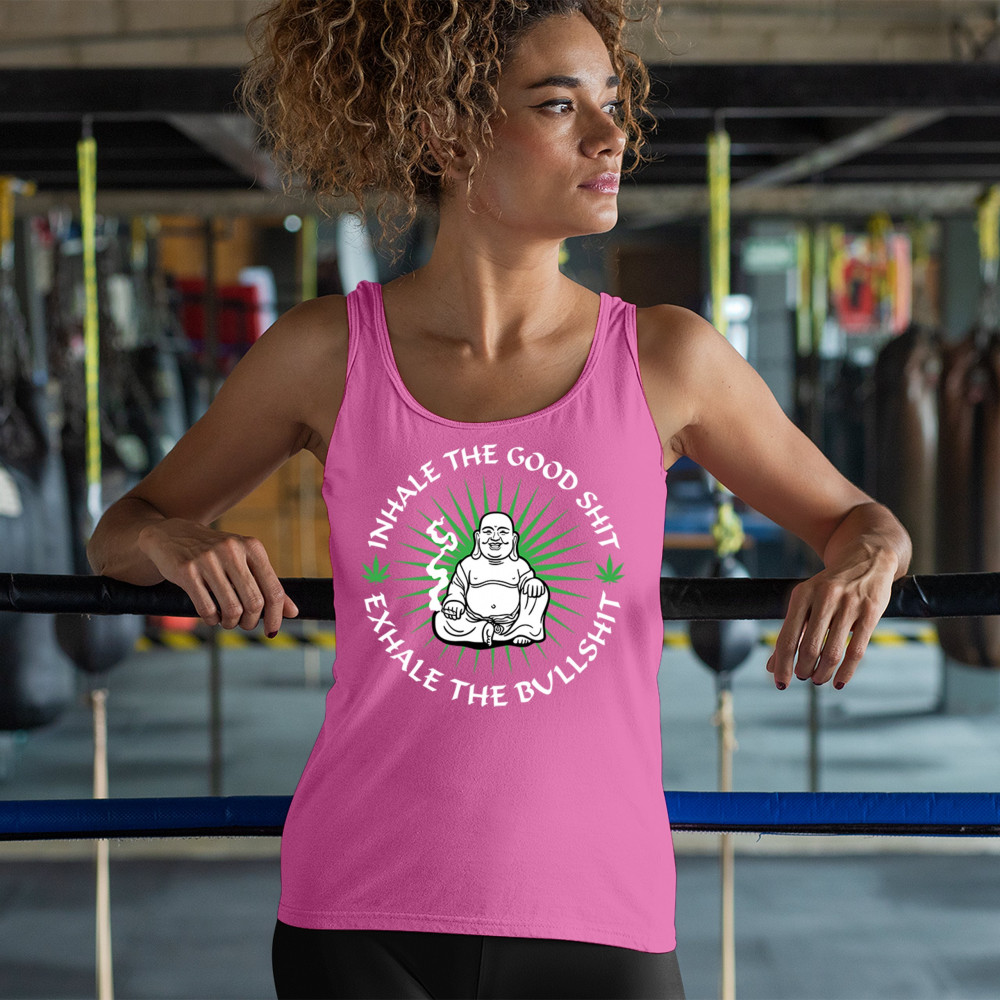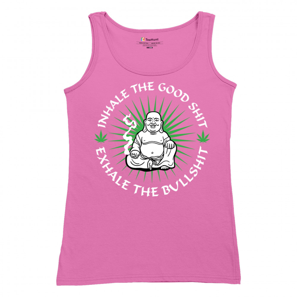This hilarious and zen-inspired design features a happy Buddha with a joint, surrounded by cannabis leaves. “Inhale the Good Shit, Exhale the Bullshit†delivers chill stoner wisdom with a wink. Ideal for mindful marijuana lovers, 420 fans, or spiritual rebels with a sense of humor and a love for weed.
