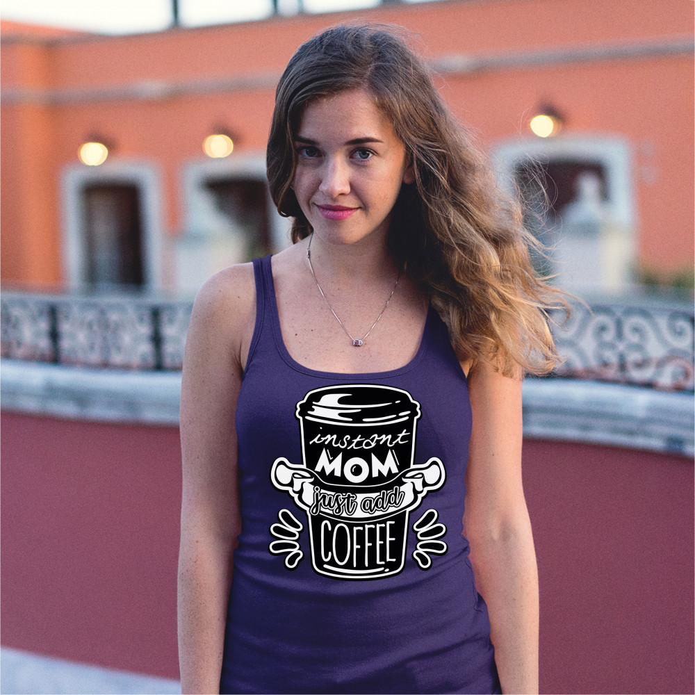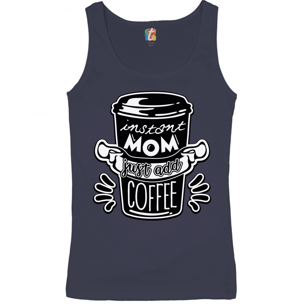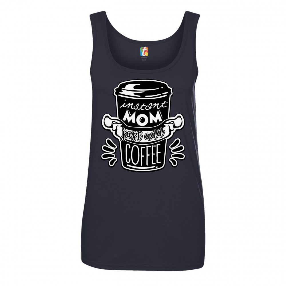 INSTANT MOM JUST ADD COFFEE women's tank top funny mother's day mom life navy blue