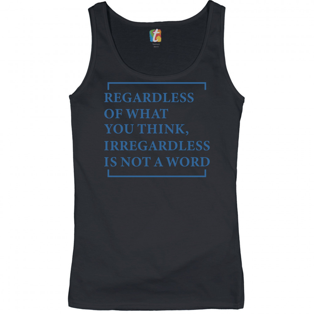 IRREGARDLESS IS NOT A WORD women's tank top funny english grammar black