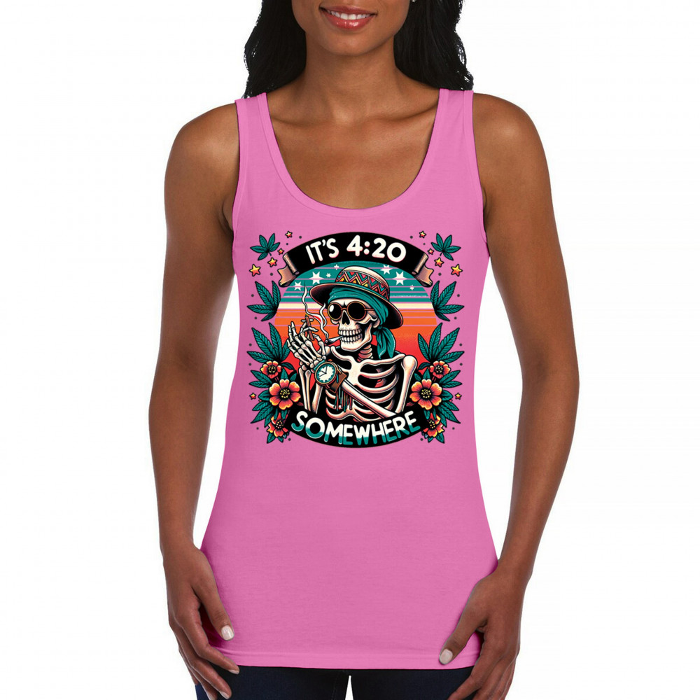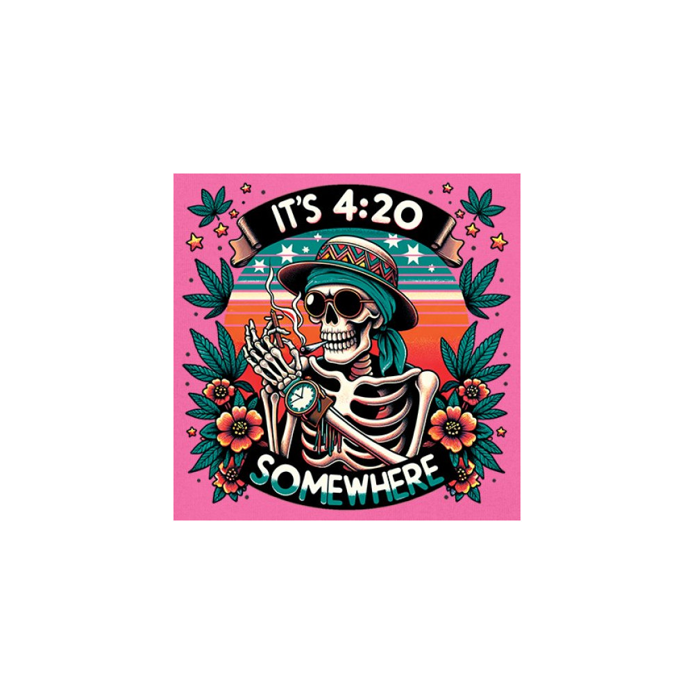 Get lifted with this “It’s 4:20 Somewhere†design featuring a joint-smoking skeleton, tropical sunset, and Deadhead stoner vibes. With bold trippy colors and beachy weed art, this tee is perfect for April 20 parties, summer festivals, and cannabis lovers living the high life.