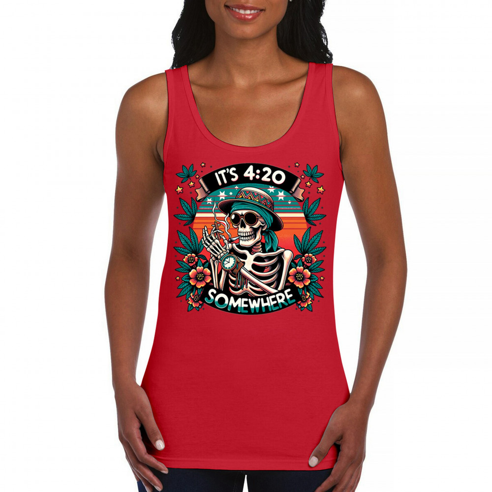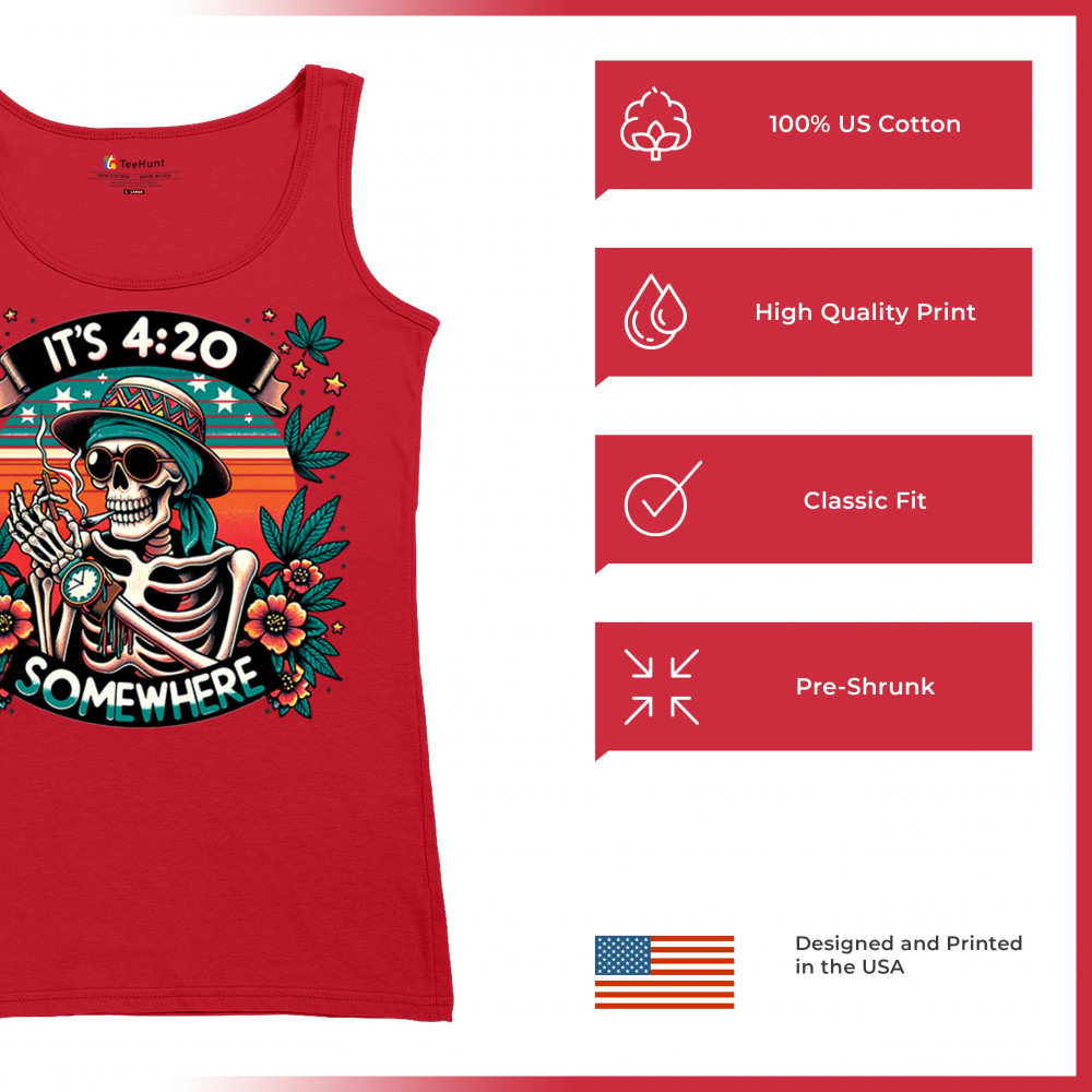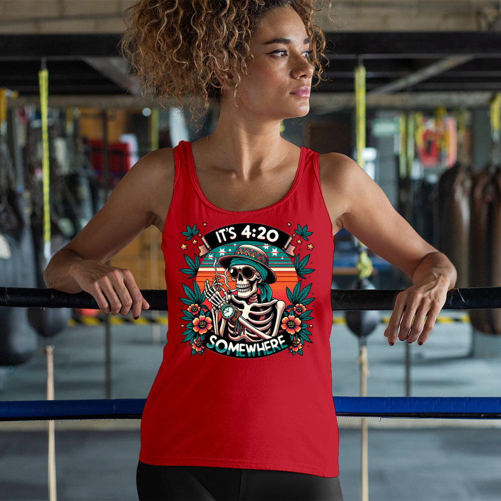 Get lifted with this “It’s 4:20 Somewhere†design featuring a joint-smoking skeleton, tropical sunset, and Deadhead stoner vibes. With bold trippy colors and beachy weed art, this tee is perfect for April 20 parties, summer festivals, and cannabis lovers living the high life.