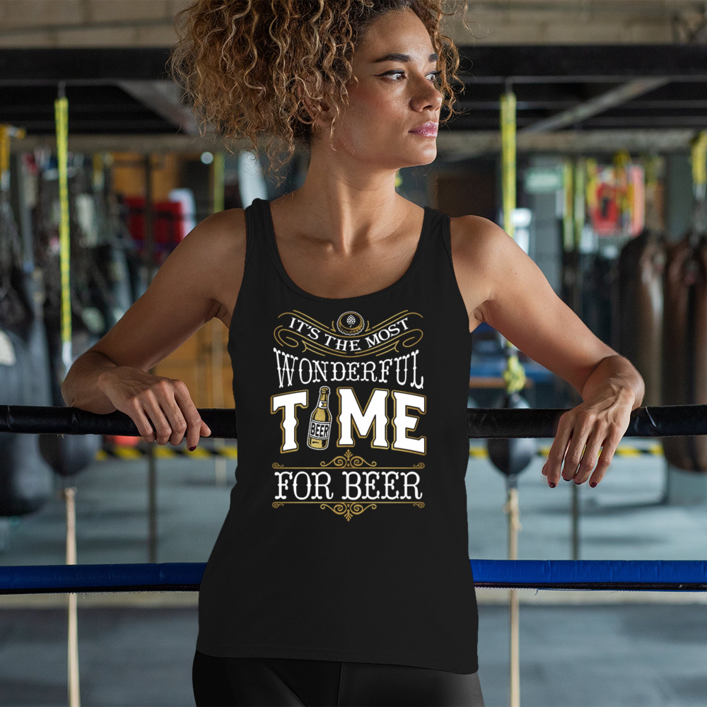 Bring some holiday cheer to your wardrobe with our "It's The Most Wonderful Time for Beer" design. Featuring a festive beer bottle and playful text, this design is perfect for adding humor to holiday gatherings, beer festivals, or any casual outing. Ideal for beer lovers and brew enthusiasts, it makes a fantastic gift for those who appreciate beer-themed fun. Embrace the season and your love for beer with this delightful and humorous design!