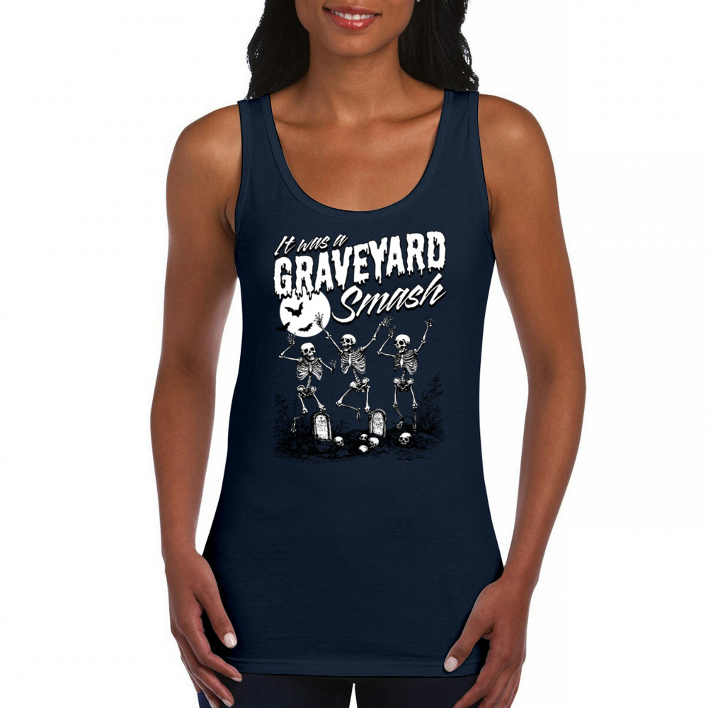 Add a touch of spooky fun to your Halloween attire with this "Graveyard Smash" design, showcasing skeletons dancing under the moonlight in a graveyard. Ideal for anyone who loves Halloween, this graphic tee is perfect for parties, haunted houses, or casual trick-or-treating. Made from high-quality materials, it offers both comfort and style, ensuring you look great while embracing the festive spirit. Available in multiple sizes, this shirt is a must-have for your Halloween collection.