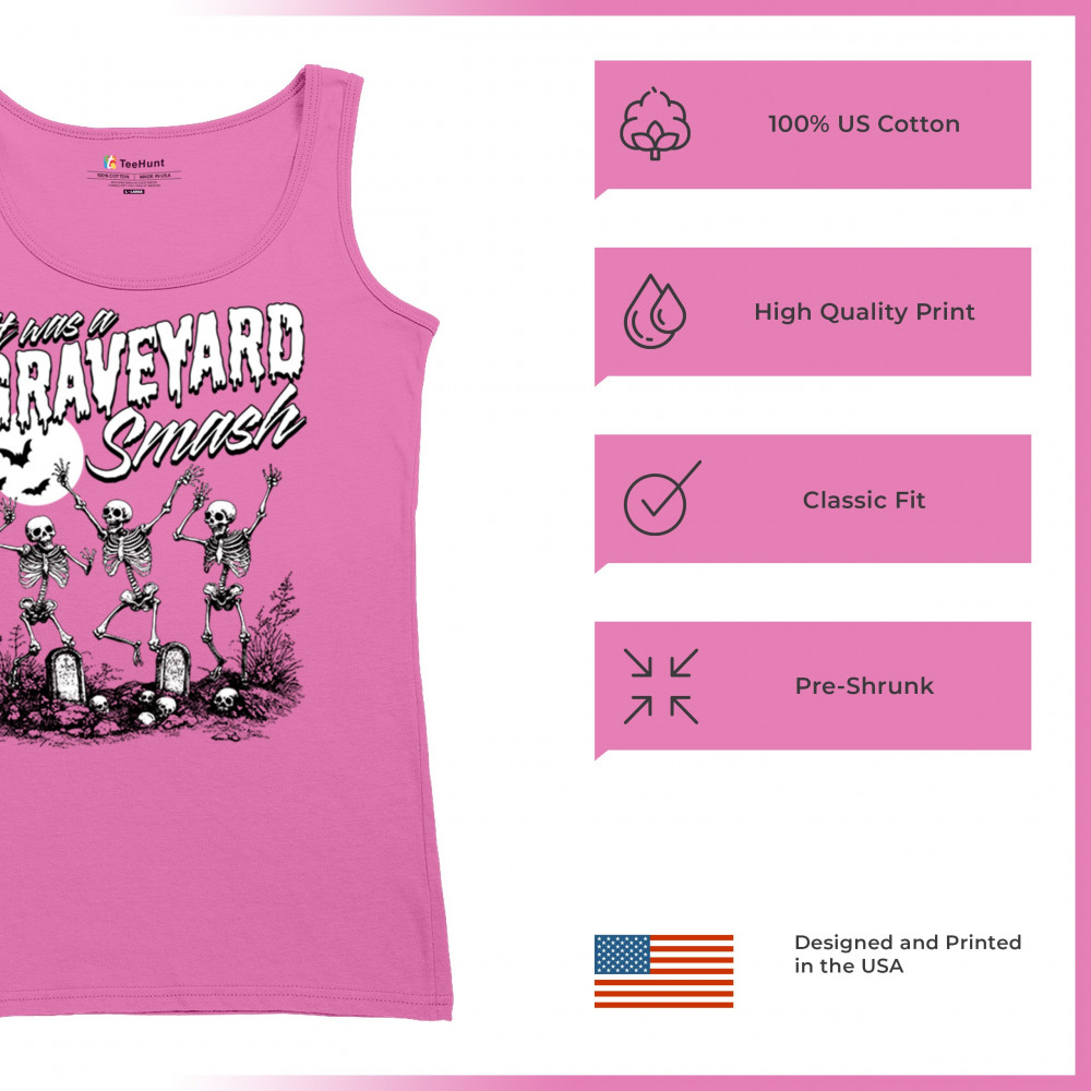 Celebrate Halloween with a fun "Graveyard Smash" design featuring dancing skeletons. Perfect for parties and haunted house events!