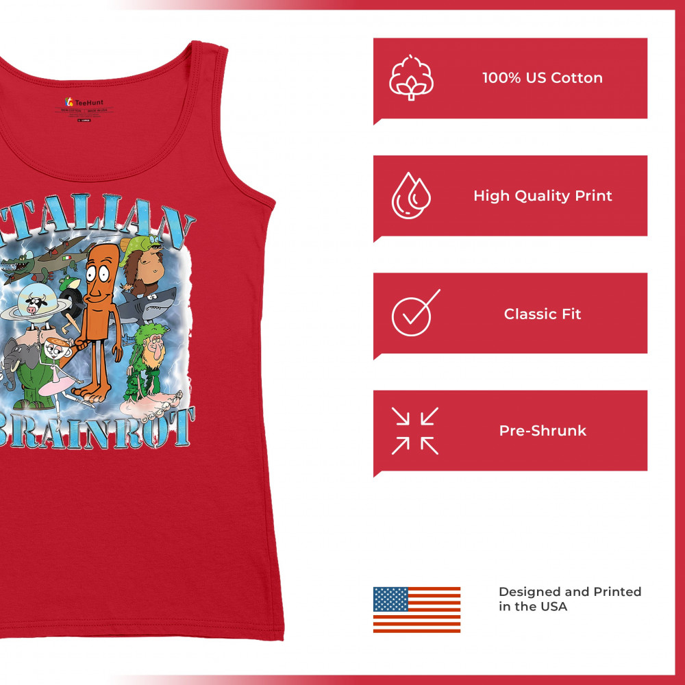 Unleash pure meme chaos with our Italian Brainrot shirt featuring iconic Gen Z fever dream characters like Chimpanzini Bananini, Tralalero Tralala, and Bombardino crocodile. This absurd design captures viral humor, ironic fashion, and chaotic energy, perfect for cursed meme fans, TikTok lovers, Gen Alpha vibes, and surreal internet style.