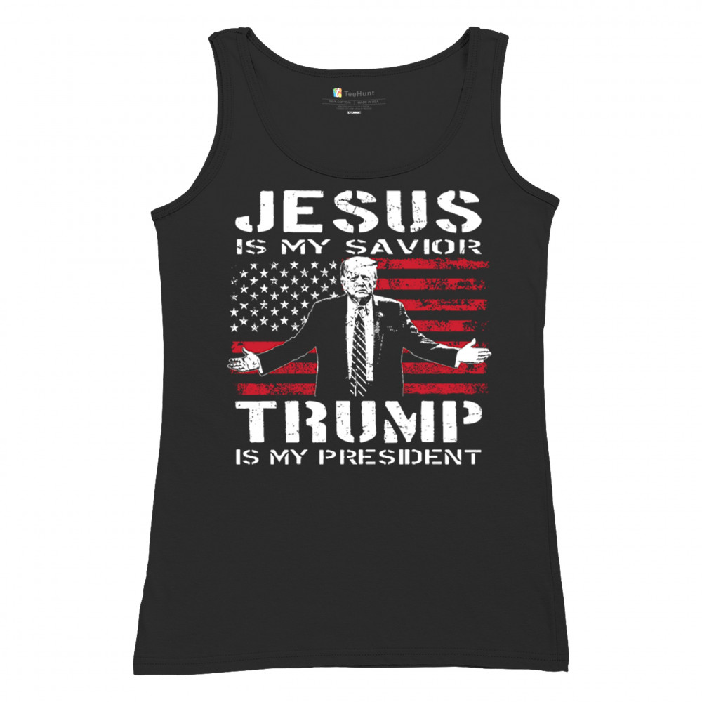 Express your unwavering faith and patriotism with the "Jesus is My Savior, Trump is My President" design. Perfect for conservatives, Republicans, and Trump supporters, this bold graphic combines spiritual devotion with a commitment to America First values. Celebrate the 47th President and the fight for freedom with this standout piece at rallies, events, or as a unique gift.