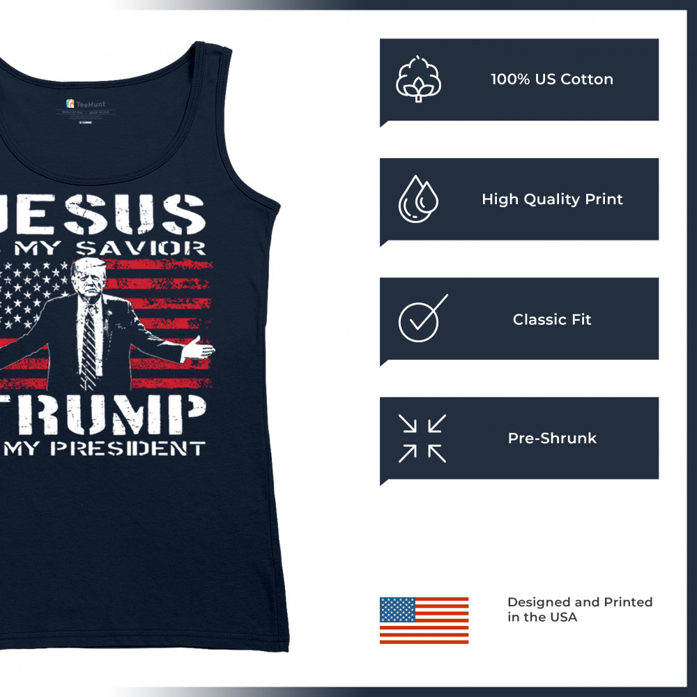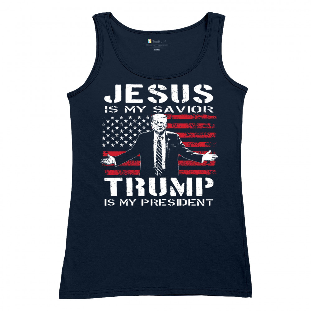 Express your unwavering faith and patriotism with the "Jesus is My Savior, Trump is My President" design. Perfect for conservatives, Republicans, and Trump supporters, this bold graphic combines spiritual devotion with a commitment to America First values. Celebrate the 47th President and the fight for freedom with this standout piece at rallies, events, or as a unique gift.