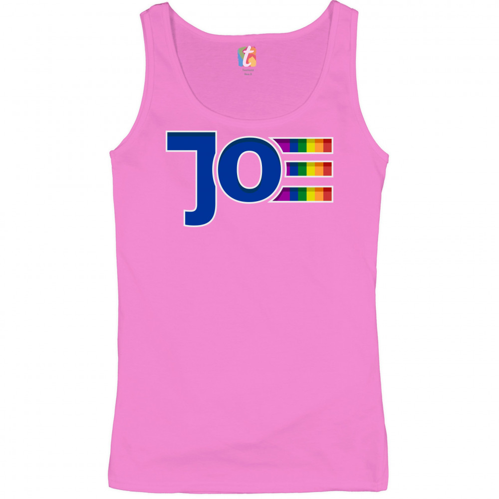 A political print featuring the name of the democratic presidential candidate "Joe". The letter "e" is painted with the colors of the lgbt rainbow. It is a great choice to wear to show your support for the democratic presidential nominee and his vice pres