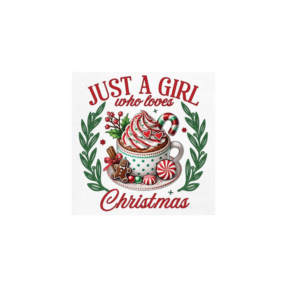 This cheerful Christmas cocoa design blends whipped cream, candy canes, peppermint sweets, and a gingerbread cookie for the ultimate festive aesthetic. Perfect for holiday-loving girls, cozy winter vibes, Christmas baking fans, warm beverage enthusiasts, peppermint lovers, seasonal gatherings, and anyone who adores classic holiday sweetness.