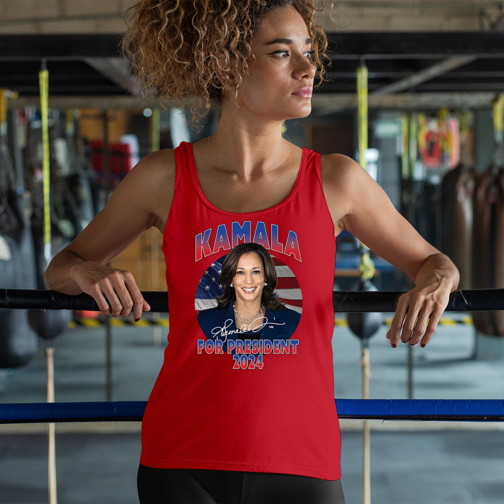 Kamala Harris's 2024 presidential campaign design captures the essence of hope and progress. Featuring a bold and vibrant graphic with her name, portrait, and the American flag, this design symbolizes the fight for liberal values, women's rights, and LGBTQ+ equality. It's perfect for supporters who want to make a statement at rallies, events, or in everyday life. Show your support for a brighter future with this compelling design.