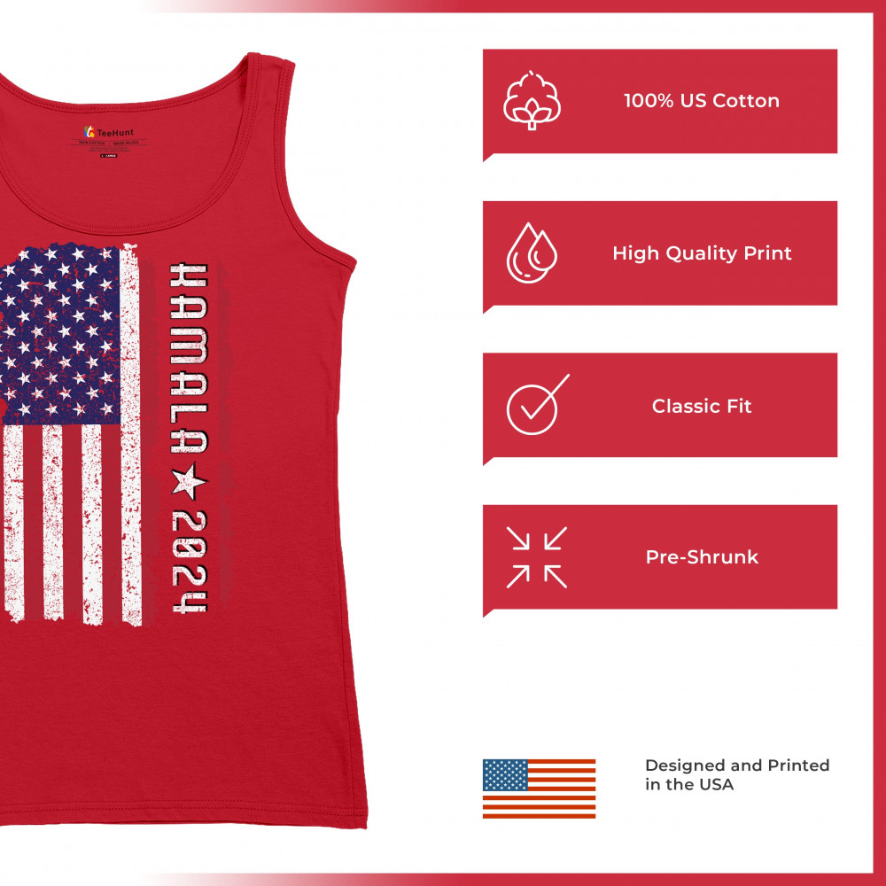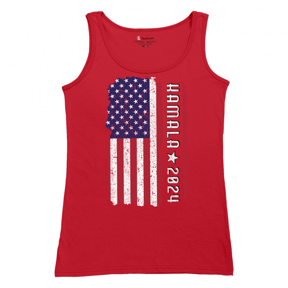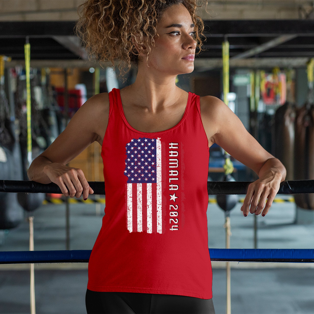 Support Kamala Harris 2024 with a bold design featuring a distressed American flag. Perfect for rallies and political events. Celebrate diversity!