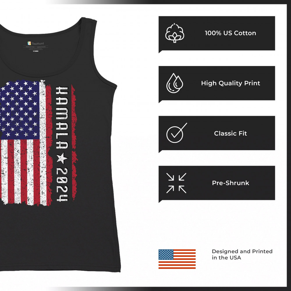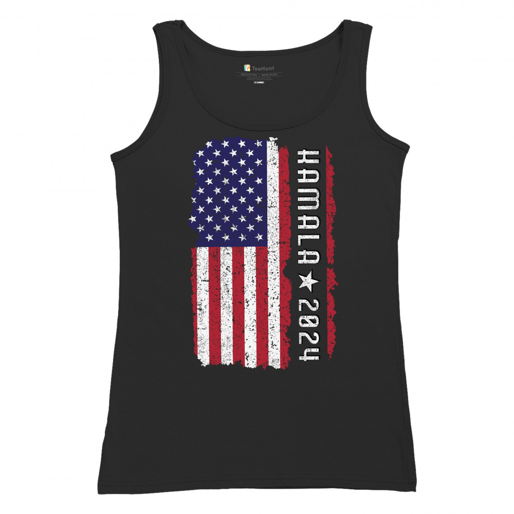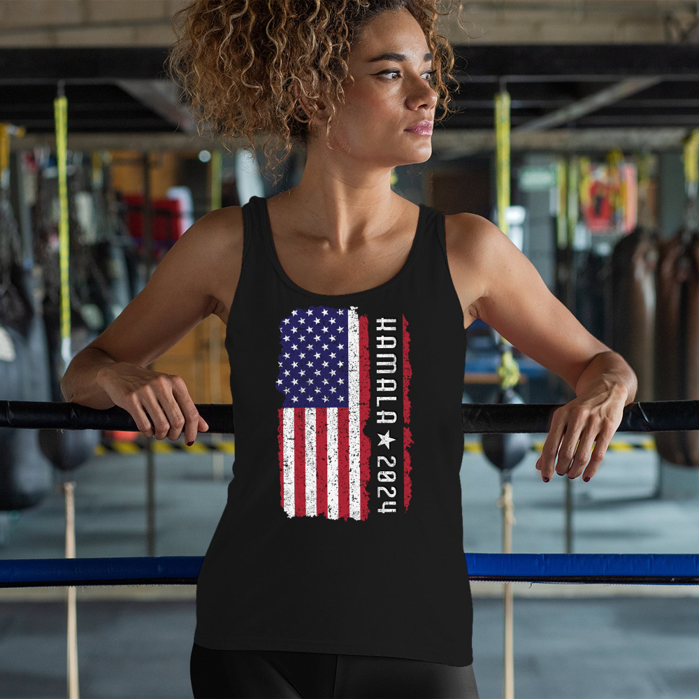 Support Kamala Harris 2024 with a bold design featuring a distressed American flag. Perfect for rallies and political events. Celebrate diversity!