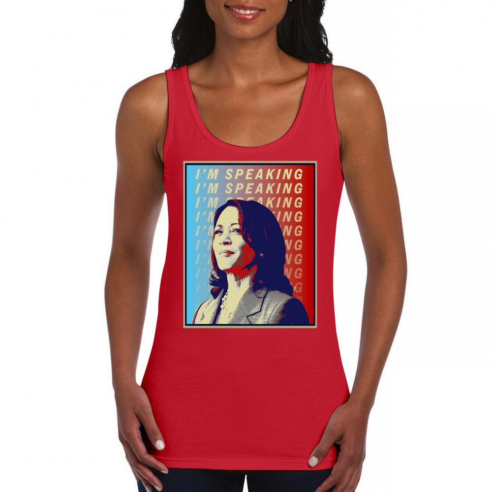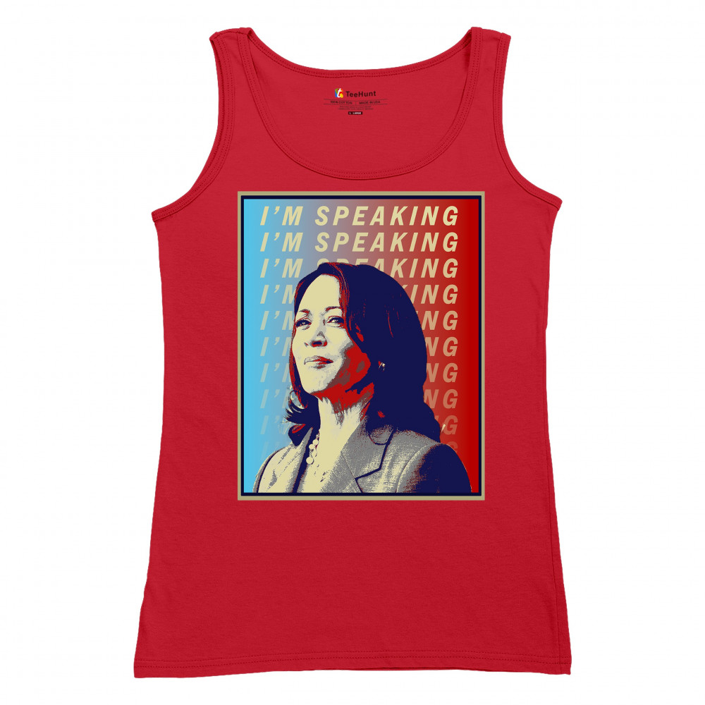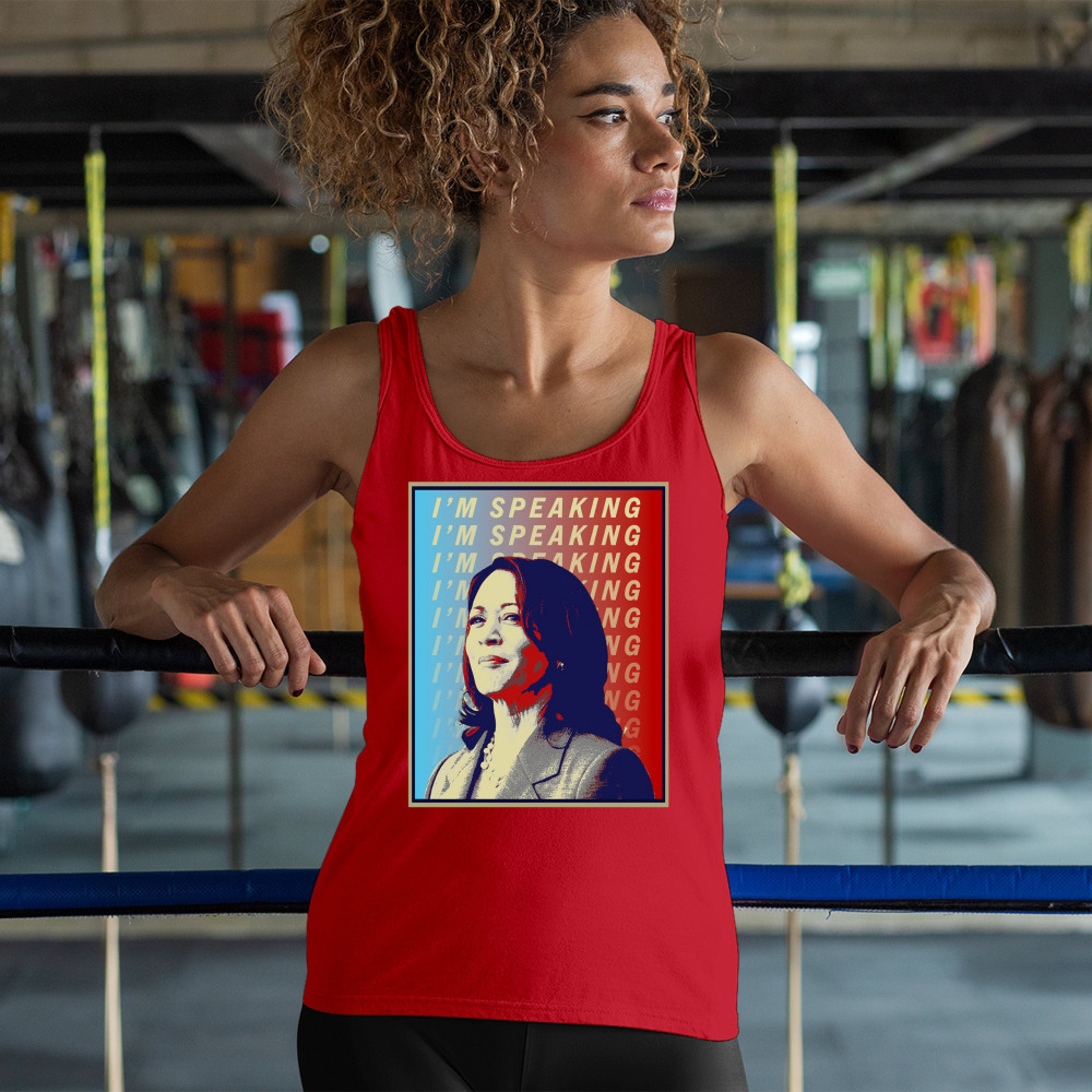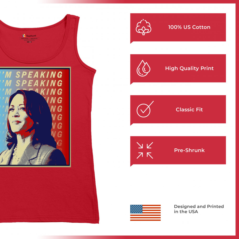 Support Kamala Harris with this bold and inspiring design. "I'M SPEAKING" echoes her powerful voice in the political arena, making it perfect for anti-Trump supporters, liberals, and Democrats. Crafted from durable materials, this design is comfortable for any event, from rallies to casual outings. Celebrate diversity and the historic candidacy of the potential first female president, resonating with black Americans, Hispanic Americans, LGBTQ supporters, and other minorities. Make a statement of hope and progress with this unique design.