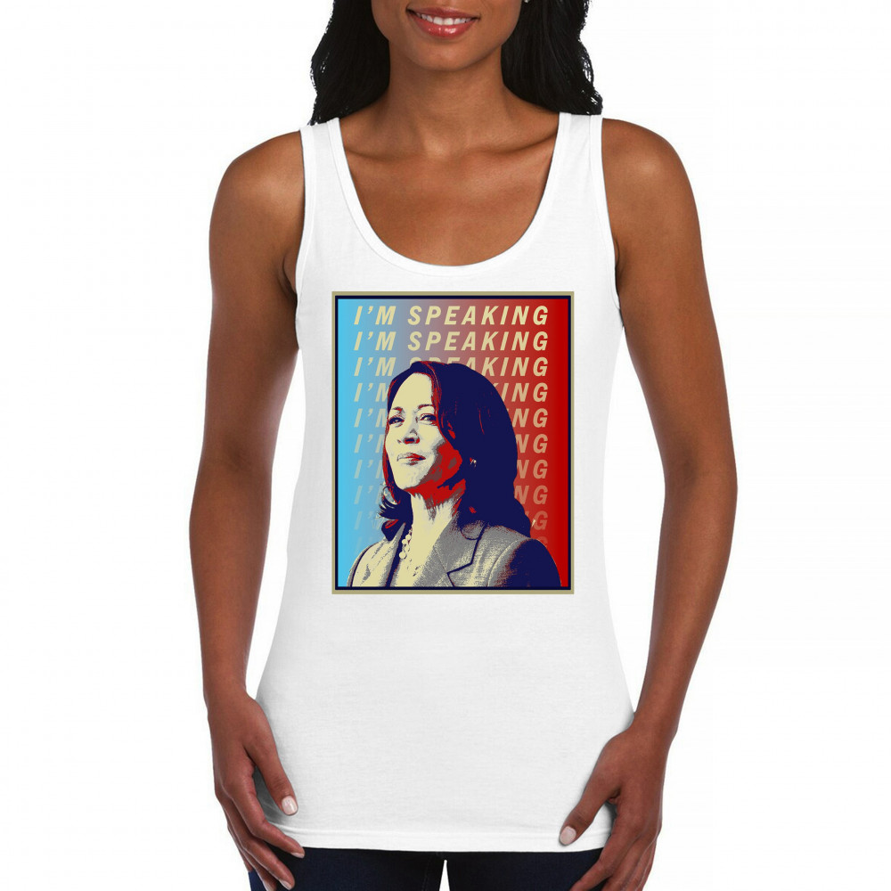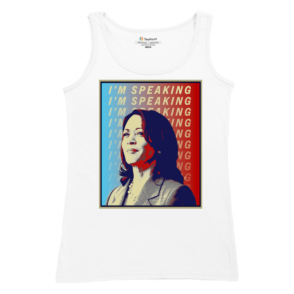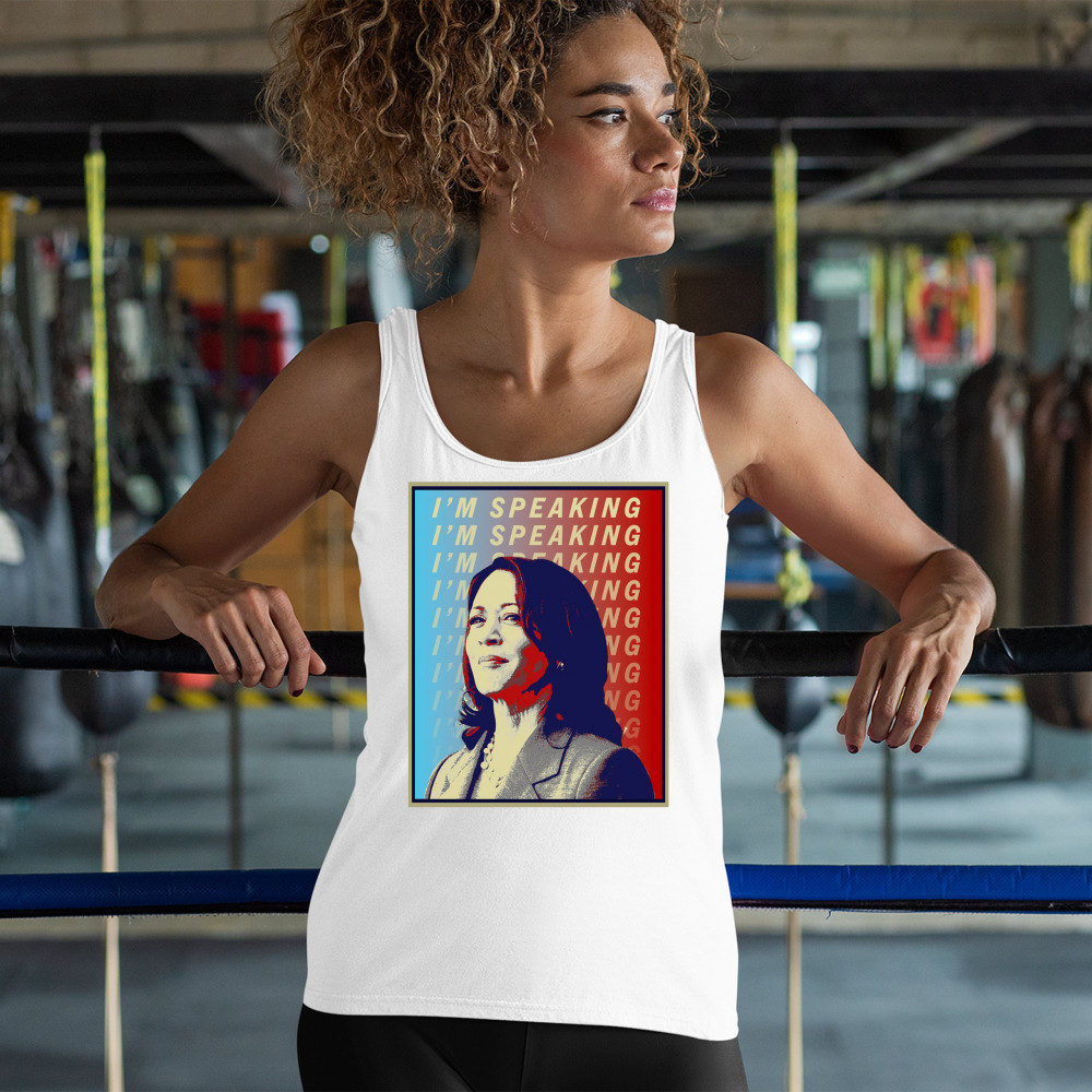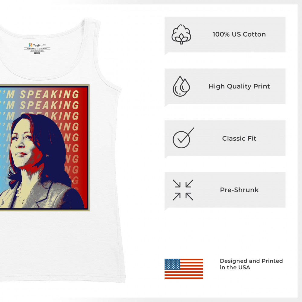 Support Kamala Harris with this bold and inspiring design. "I'M SPEAKING" echoes her powerful voice in the political arena, making it perfect for anti-Trump supporters, liberals, and Democrats. Crafted from durable materials, this design is comfortable for any event, from rallies to casual outings. Celebrate diversity and the historic candidacy of the potential first female president, resonating with black Americans, Hispanic Americans, LGBTQ supporters, and other minorities. Make a statement of hope and progress with this unique design.