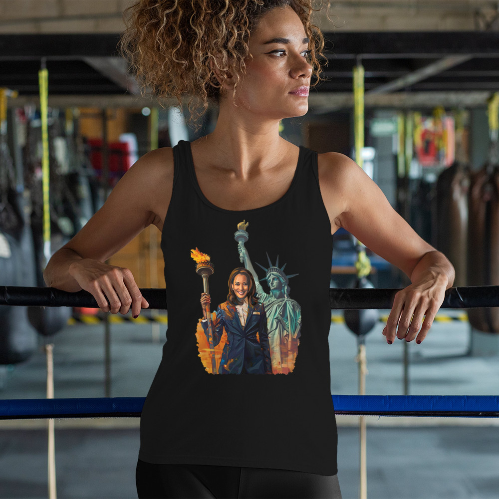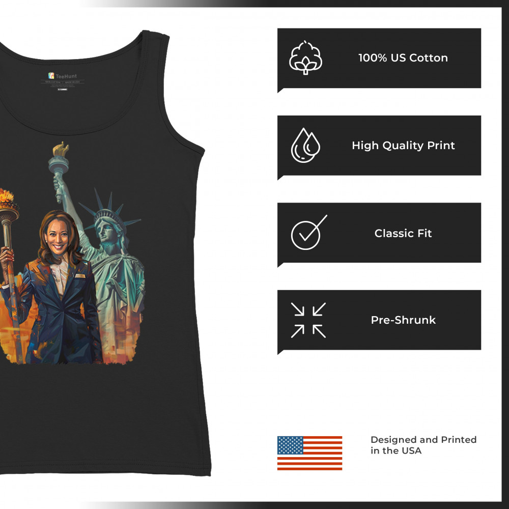 Show your support for Harris-Walz 2024 with this bold design featuring Kamala Harris and the Statue of Liberty. Stand for justice, equality, and a brighter future.