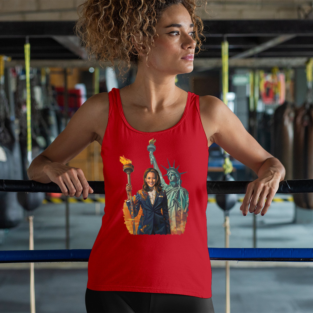 Show your support for Harris-Walz 2024 with this bold design featuring Kamala Harris and the Statue of Liberty. Stand for justice, equality, and a brighter future.